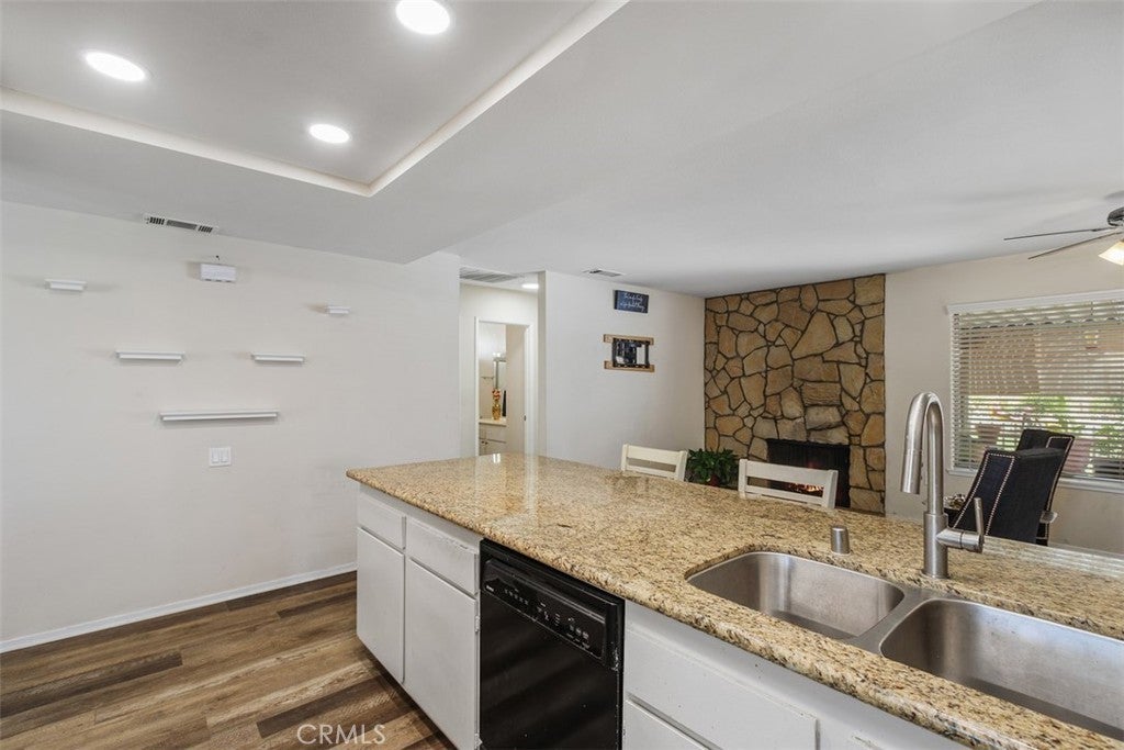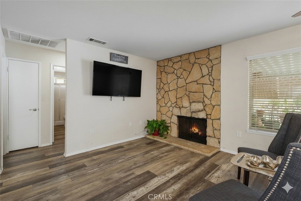 New Improved Price!! Beautiful POOL Home in a 55+ Senior Living Community! Discover the perfect balance of relaxation and recreation in this inviting senior community home. The expansive backyard is ideal for entertaining, complete with a sparkling newer salt water pool only 4 years old, featuring a slide, two covered patios for shade, and low maintenance artificial turf bordered by a block wall for privacy. Inside, the layout is designed with gatherings in mind, and INTERIOR FRESHLY PAINTED! A formal dining room and living room with newer neutral-toned laminate flooring. The cozy family room, with a brick fireplace, creates a warm retreat. The kitchen offers plenty of counter space with granite counter tops, a roomy breakfast bar, and stainless steel appliances. The primary bedroom provides peaceful views of the landscaped yard, mirrored closet doors, and plenty of natural light. The secondary bedroom is generously sized and conveniently located near the guest bath. With a newer roof, HVAC system only 2 years old, and excellent curb appeal, this home is move-in ready. Residents enjoy easy access to freeways, shopping, dining, and local churches, as well as community amenities including pickleball, fitness rooms, senior activities, and an association pool. Make an offer!