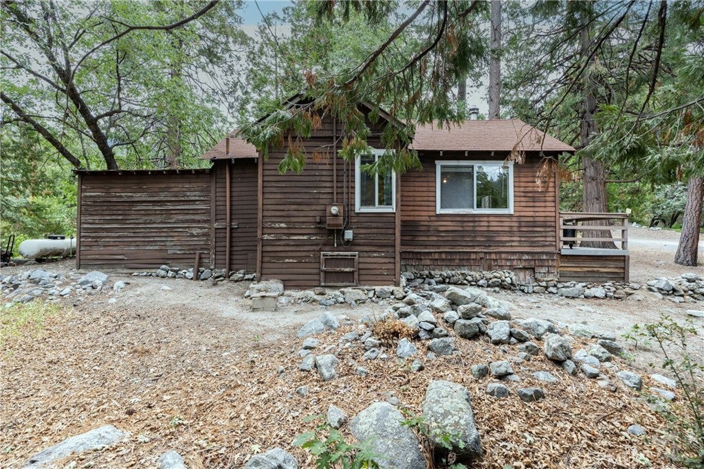 Rare Forest Falls Cabin on Nearly Half an Acre! This is not your average mountain cabin, this property features 2 bedrooms & 1 bath and sits on a huge almost half an acre lot with endless potential. Expand the home, add a second unit, or simply enjoy the space for entertaining, bonfires, and BBQs. The spacious living room boasts a wood-burning fireplace/stove, perfect for chilly mountain evenings, while the charming kitchen offers plenty of cabinets and storage. Surrounded by towering pine trees and mountain views, you’ll love the privacy and fresh air. Relax on the front porch with your morning coffee or take in the snow-capped peaks from the spacious back deck. Built-in storage shed for all your outdoor gear. Perfect as a weekend getaway, investment, or retirement spot. Excellent location—minutes to hiking in the San Bernardino National Forest, just down the hill from Big Bear, and about 1-hr 20 min from L.A. Hidden gem offers tons of space, privacy, serenity, and opportunity all in one. Don’t miss this rare chance to own a cabin with extraordinary lot size, endless potential, and unbeatable natural beauty. Hurry and schedule a showing appointment before its gone!