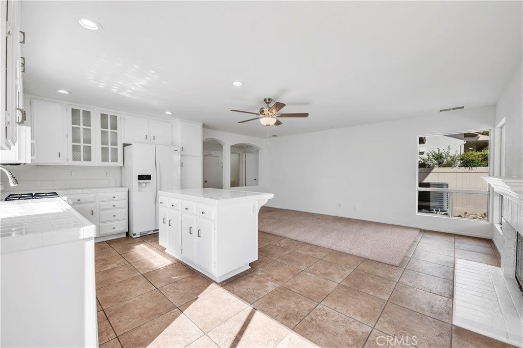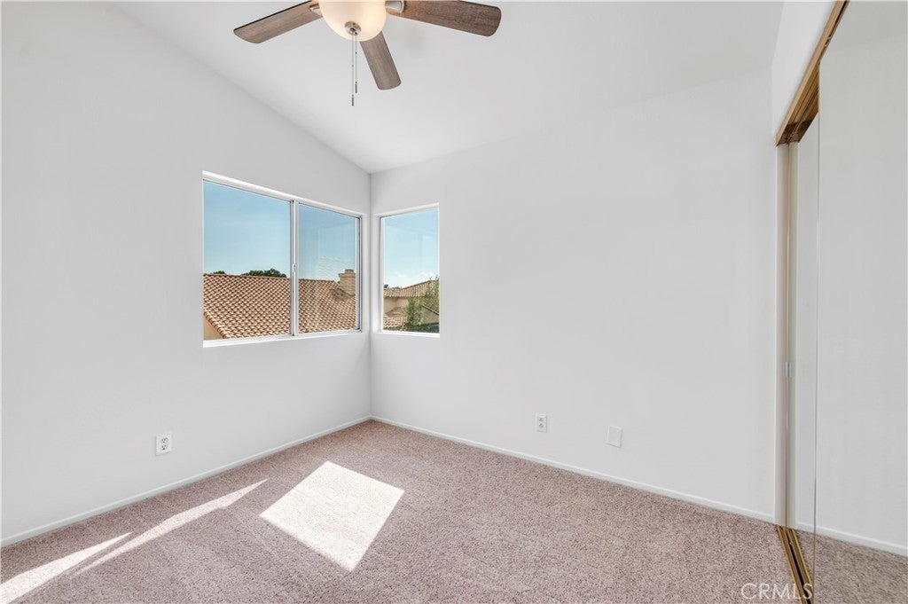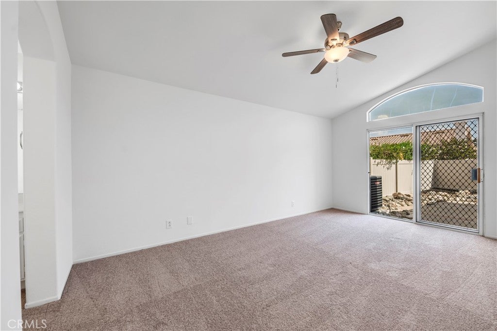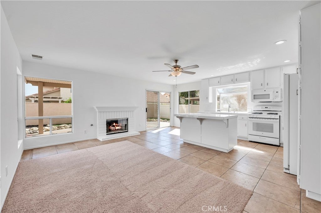 Lovely Muirfield model in Sun Lakes Country Club, a stunning 55+ community in Banning. This 3-bedroom, 2.5-bath home with loft and family room offers 1,846 sq. ft. of comfortable living. A double-door entry welcomes you into a bright, open floor plan with abundant natural light and freshly painted white walls. The spacious living and dining areas flow nicely for entertaining. The kitchen features ceramic tile flooring, updated painted cabinets, and appliances including the refrigerator. The downstairs primary suite is open and airy with a sliding door to the patio and an en-suite bathroom featuring dual sinks. Upstairs has been fully refreshed with all new carpet, paint, and ceiling fans in each room, along with two bedrooms, a full bath, and a loft area. Other highlights include mirrored closet doors, ample garage storage with built-in cabinets and attic ladder, a solid Alumawood patio cover, fresh exterior paint, new landscaping, and new carpet throughout the home. Sun Lakes Country Club offers resort-style living with two golf courses, three clubhouses (one with a full-service restaurant and lounge), three swimming pools including an indoor pool, tennis and bocce ball courts, and countless clubs and social activities. The perfect blend of comfort and community.