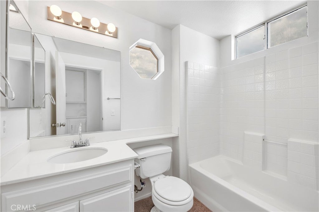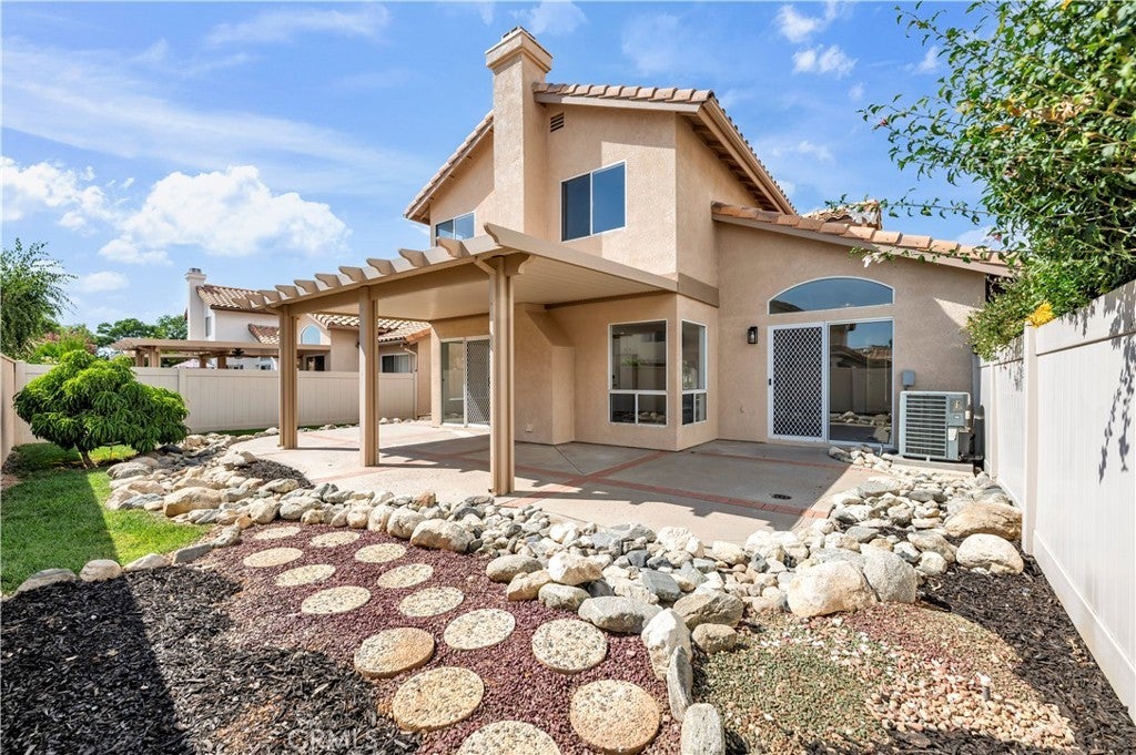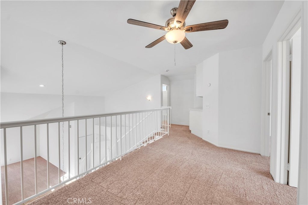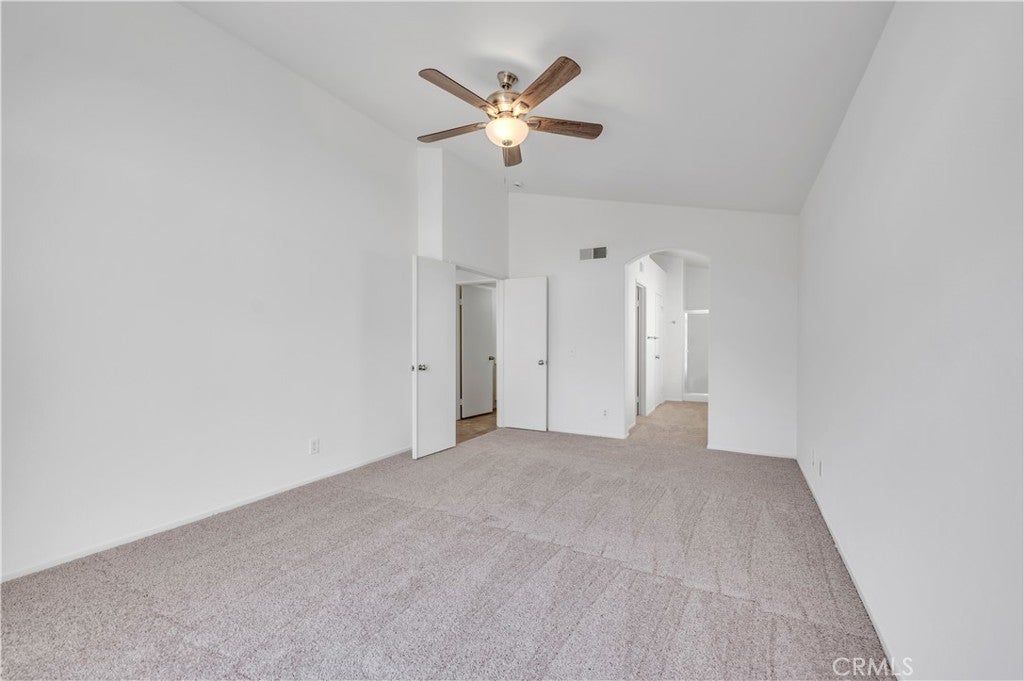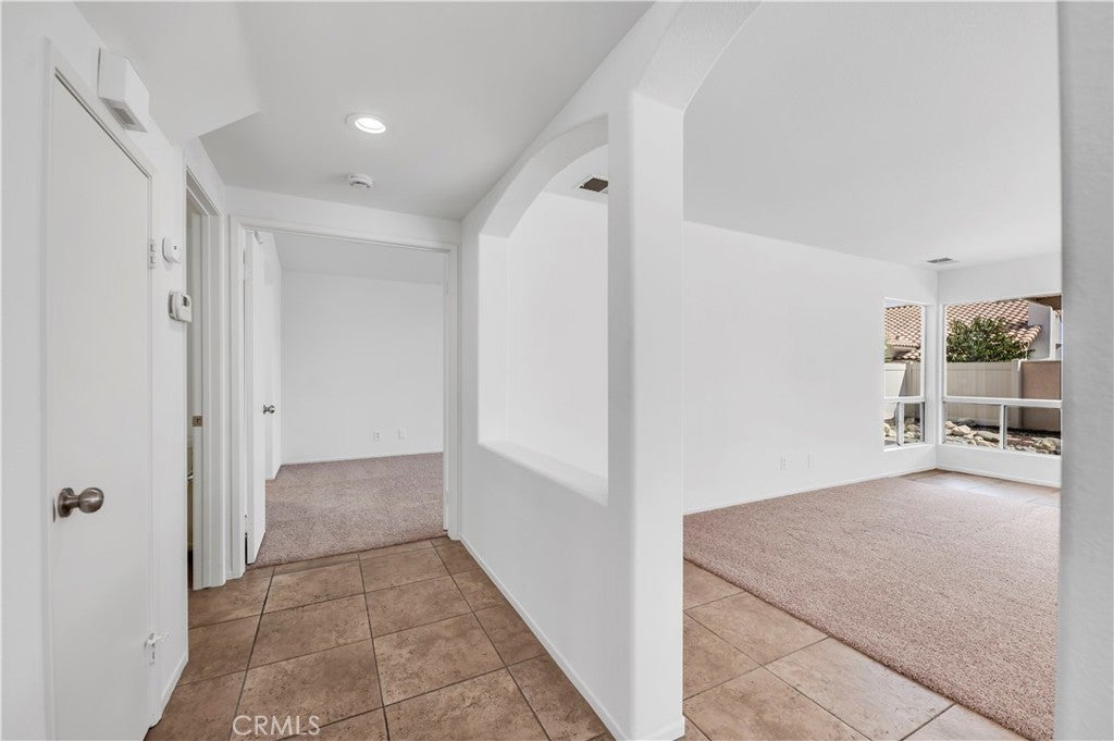Lovely Muirfield model in Sun Lakes Country Club, a stunning 55+ community in Banning. This 3-bedroom, 2.5-bath home with loft and family room offers 1,846 sq. ft. of comfortable living. A double-door entry welcomes you into a bright, open floor plan with abundant natural light and freshly painted white walls. The spacious living and dining areas flow nicely for entertaining. The kitchen features ceramic tile flooring, updated painted cabinets, and appliances including the refrigerator. The downstairs primary suite is open and airy with a sliding door to the patio and an en-suite bathroom featuring dual sinks. Upstairs has been fully refreshed with all new carpet, paint, and ceiling fans in each room, along with two bedrooms, a full bath, and a loft area. Other highlights include mirrored closet doors, ample garage storage with built-in cabinets and attic ladder, a solid Alumawood patio cover, fresh exterior paint, new landscaping, and new carpet throughout the home. Sun Lakes Country Club offers resort-style living with two golf courses, three clubhouses (one with a full-service restaurant and lounge), three swimming pools including an indoor pool, tennis and bocce ball courts, and countless clubs and social activities. The perfect blend of comfort and community.
