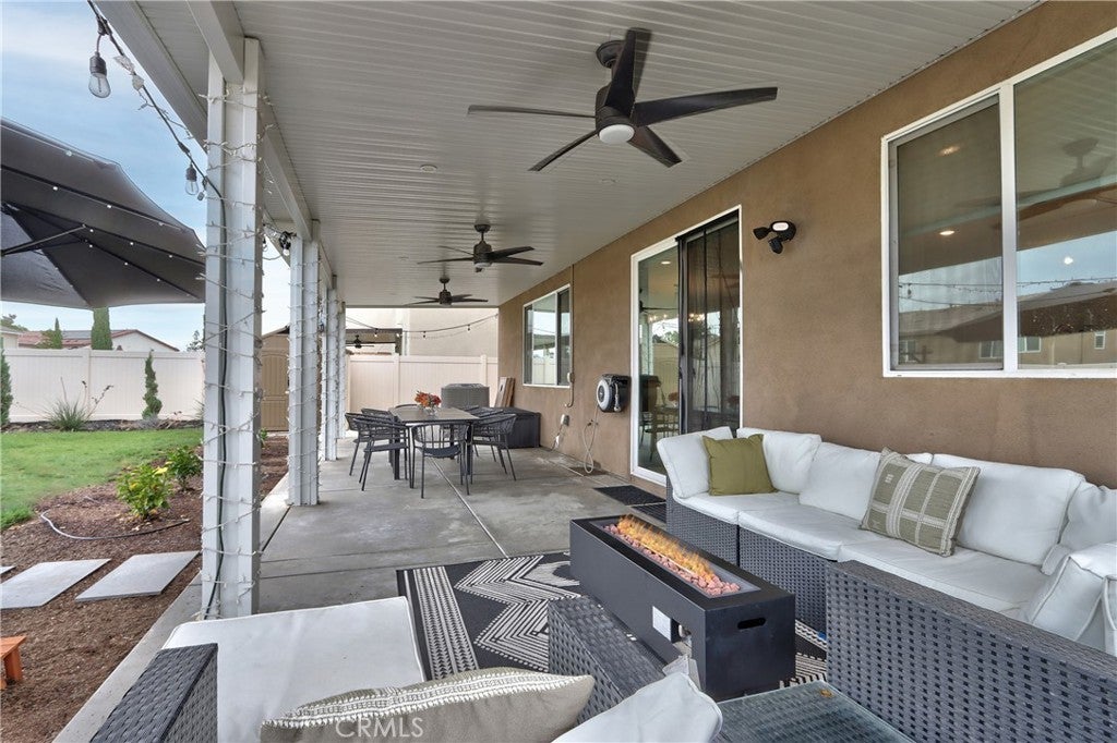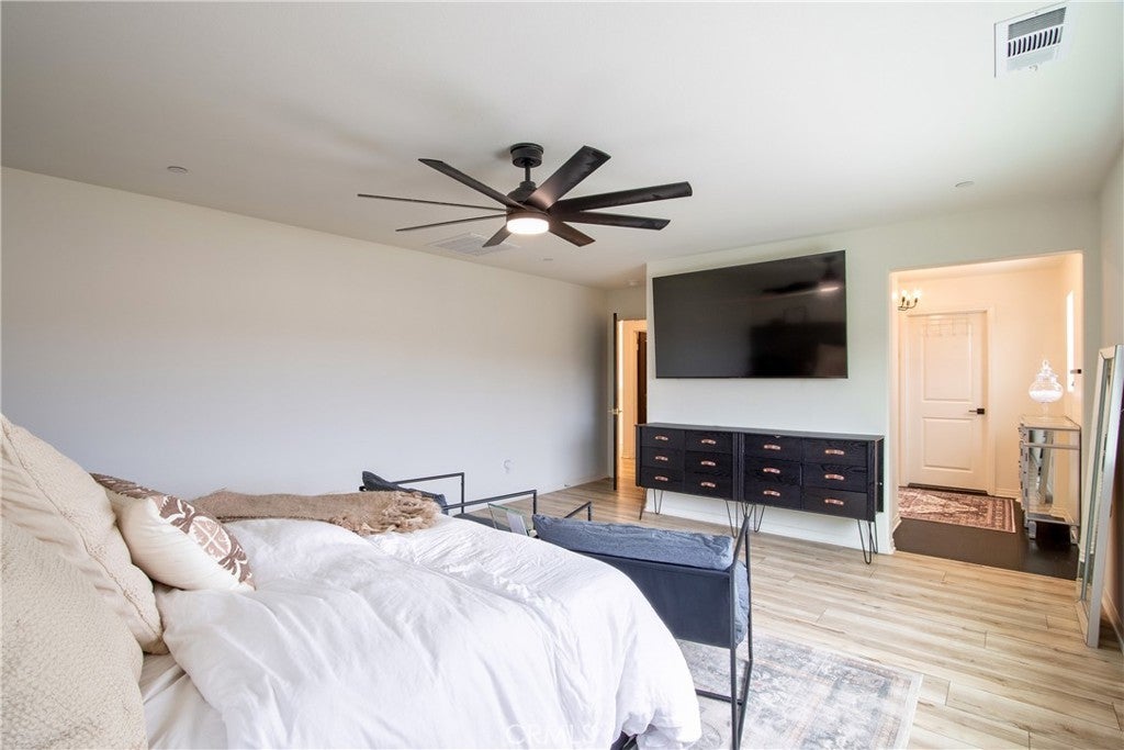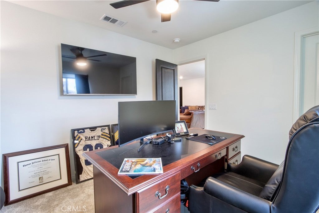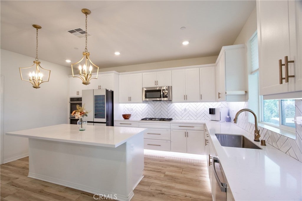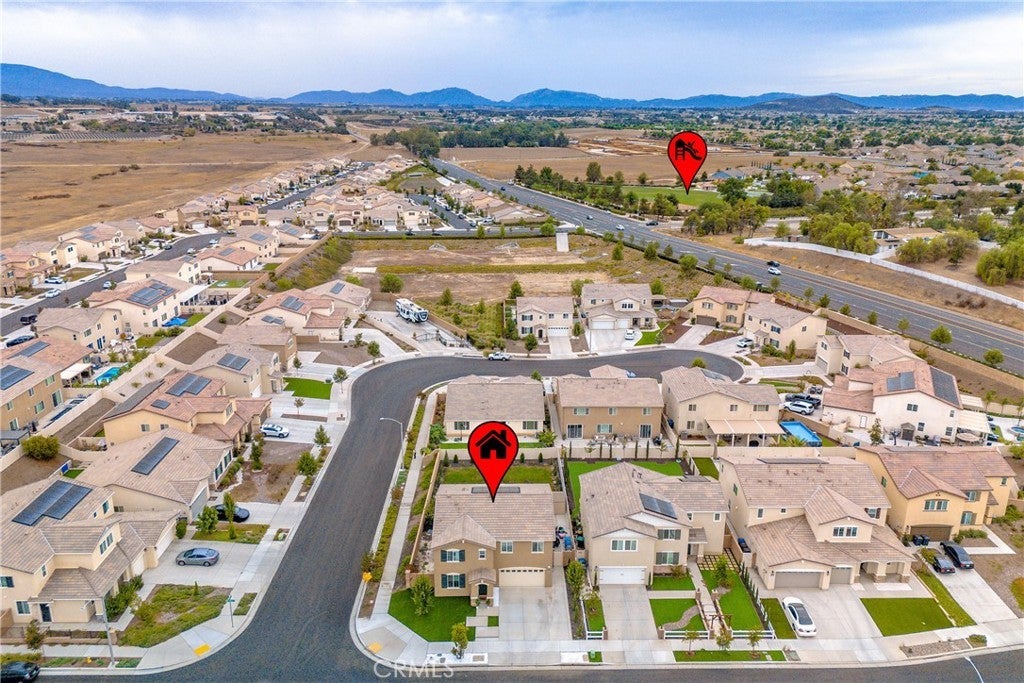 Turnkey 4-Bedroom Home with Designer Upgrades in Temecula – PAID FOR SOLAR, Built in 2022. Welcome to this move-in ready home located in Winchester and is located in the highly desirable Temecula school district. Built in 2022, this spacious 4-bedroom, 3-bathroom home offers 2,590 sq ft of modern living space on a large pool-sized corner lot with ample guest parking. Step inside to find a custom designer accent wall with stylish light sconces. The open floor plan features a downstairs bedroom and full bath—perfect for multi-generational living or guests. The gourmet kitchen is a chef’s dream, featuring a large center island with seating, herringbone backsplash, walk-in pantry, plenty of cabinets for storage, gold hardware and faucet, and designer pendant lighting. The kitchen flows seamlessly into the great room, which includes a cozy gas fireplace with floating shelves and wood mantel, and a large sliding glass door that opens to the spacious backyard—ideal for indoor-outdoor living and entertaining. Upstairs, enjoy a large loft/family room, upstairs laundry room with storage, two secondary bedrooms, and a full bathroom with dual sinks and tub/shower combo. The luxurious primary suite includes a generous bedroom, double sink vanity, walk-in shower, and an oversized walk-in closet. The backyard is perfect for entertaining, with a large covered patio, fruit trees, block wall fencing, and plenty of space for a custom pool or garden. Additional Features: include Energy-efficient construction and home is fire sprinkler, Luxury vinyl plank flooring, Recessed lighting and NO HOA, Located close to shopping, parking dining, and Temecula’s world-famous wineries.