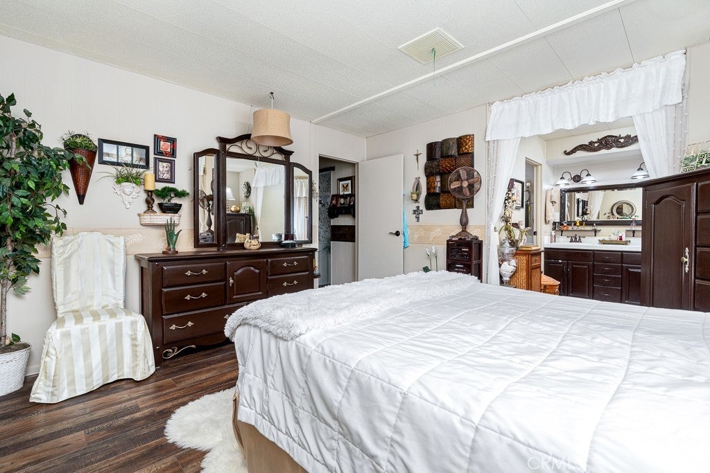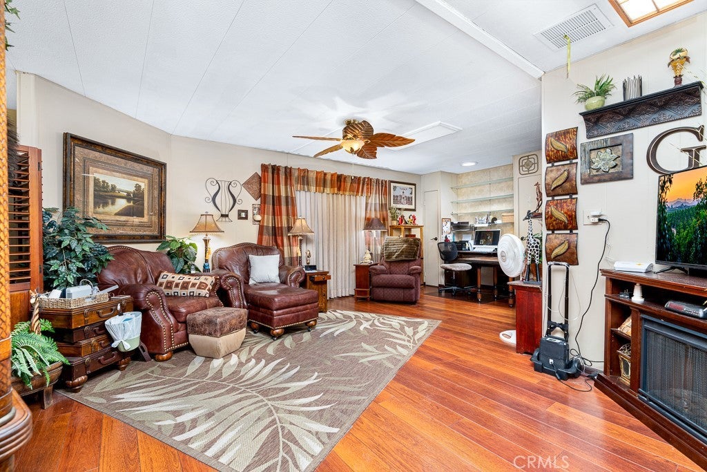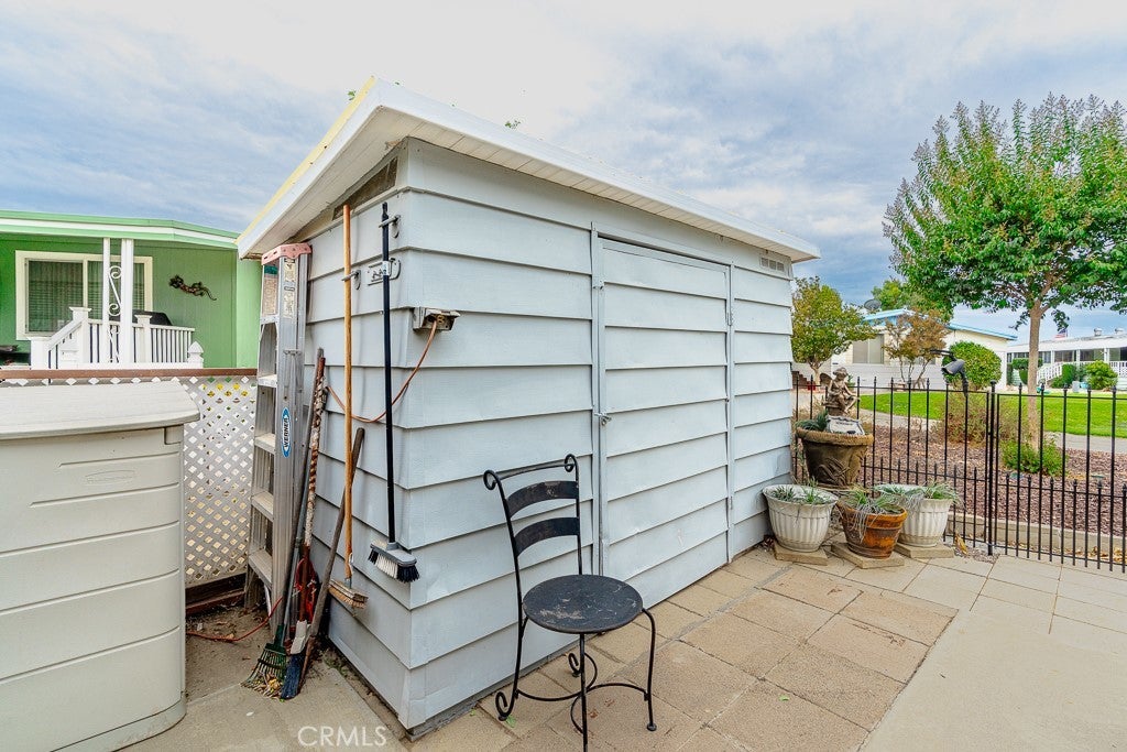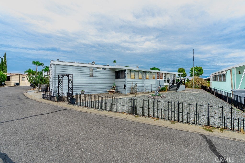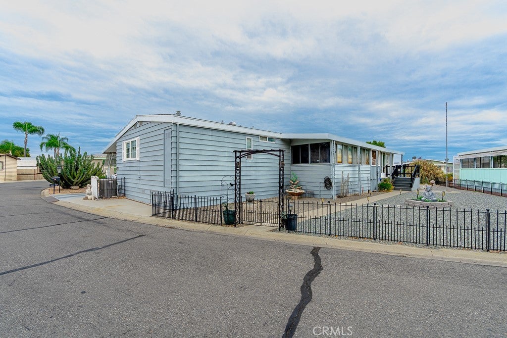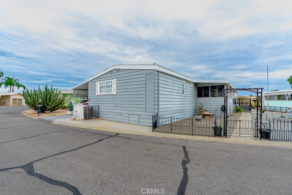 Welcome to this spacious double-wide home boasting 1,440 sq. ft. of comfortable living space in the highly sought-after Lakes at Hemet West. With a desirable open floor plan, this home offers a bright and inviting atmosphere perfect for both relaxing and entertaining. Step into the large living room that seamlessly connects to a formal dining area—ideal for hosting family and friends. The kitchen features ample cabinet space, making meal prep and storage a breeze. The primary bedroom includes an upgraded ensuite bathroom, while the second bedroom has convenient access to a second bathroom enhanced with stylish barn doors. A dedicated laundry area is located just down the hallway for added convenience. Enjoy your morning coffee or evening wine on the side patio, a perfect spot for entertaining or simply unwinding. There’s also a storage shed at the back of the home, offering extra space for tools or seasonal items. At night, take in the beautiful starlit skies from the comfort of your own home. Community amenities include: • 9-hole par 3 golf course • Swimming pool • Four lakes with catch-and-release fishing • Shuffleboard • Billiards • Horseshoes • Lawn bowling • Clubhouse • Library • Dog park, and more! And for added peace of mind, this home comes with an Upgraded Home Warranty (up to $620 value)—not that you'll need it!