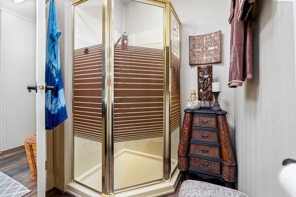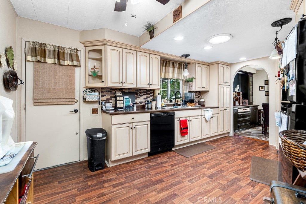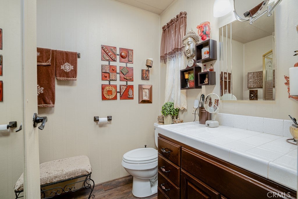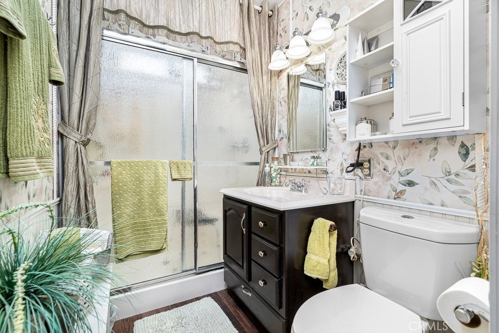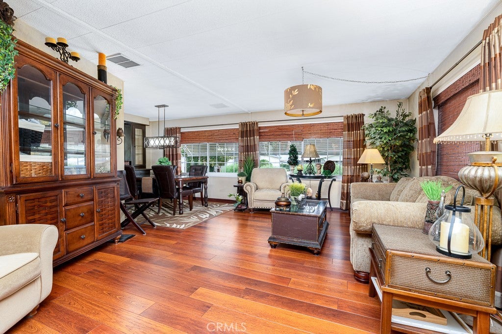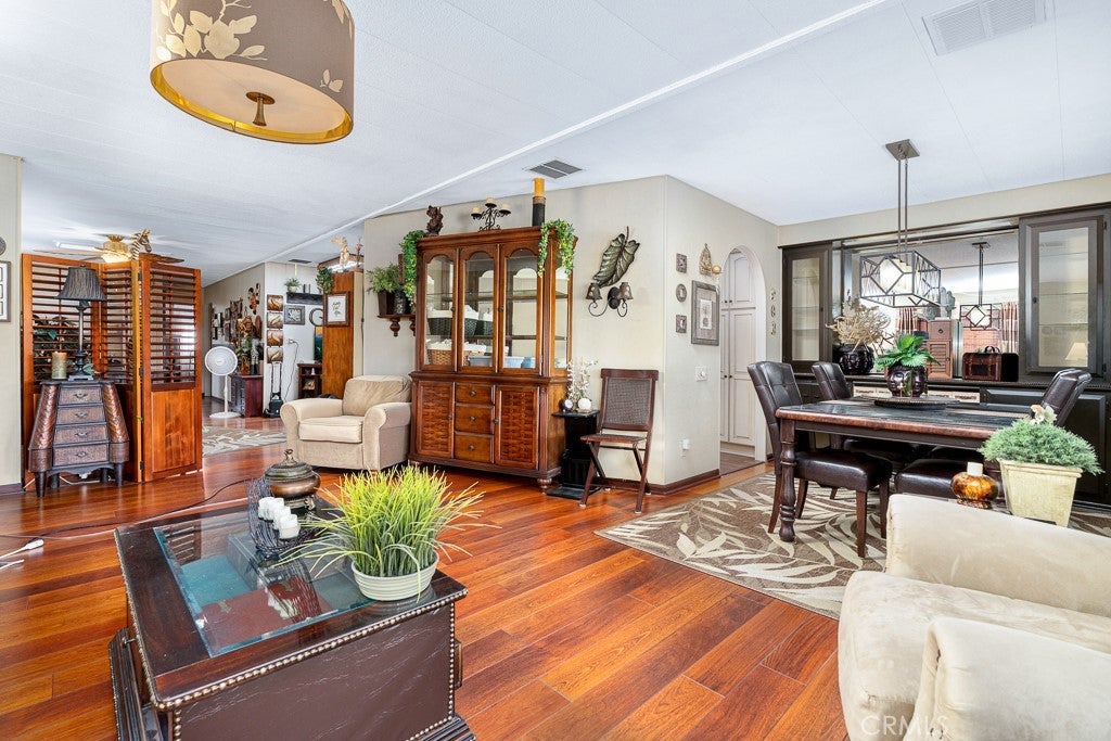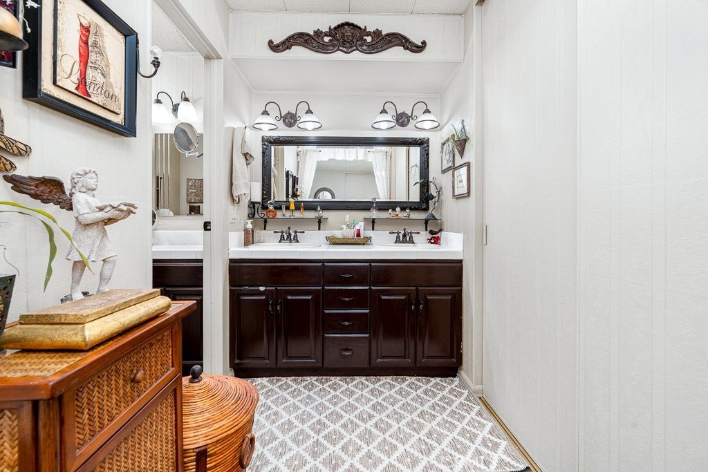 Welcome to this spacious double-wide home boasting 1,440 sq. ft. of comfortable living space in the highly sought-after Lakes at Hemet West. With a desirable open floor plan, this home offers a bright and inviting atmosphere perfect for both relaxing and entertaining. Step into the large living room that seamlessly connects to a formal dining area—ideal for hosting family and friends. The kitchen features ample cabinet space, making meal prep and storage a breeze. The primary bedroom includes an upgraded ensuite bathroom, while the second bedroom has convenient access to a second bathroom enhanced with stylish barn doors. A dedicated laundry area is located just down the hallway for added convenience. Enjoy your morning coffee or evening wine on the side patio, a perfect spot for entertaining or simply unwinding. There’s also a storage shed at the back of the home, offering extra space for tools or seasonal items. At night, take in the beautiful starlit skies from the comfort of your own home. Community amenities include: • 9-hole par 3 golf course • Swimming pool • Four lakes with catch-and-release fishing • Shuffleboard • Billiards • Horseshoes • Lawn bowling • Clubhouse • Library • Dog park, and more! And for added peace of mind, this home comes with an Upgraded Home Warranty (up to $620 value)—not that you'll need it!
