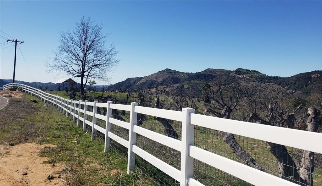 Nearly 10-acre lot has everything you have been searching for. Level to gently sloping lot with amazing views, recently drilled well (no pump installed), 2 inch water meter, electricity at the property line, new vinyl fencing and gate, and a seasonal stream. This former avocado grove has the potential for an estate home site, vineyard, grove, horse property, and the association allows for manufactured homes.