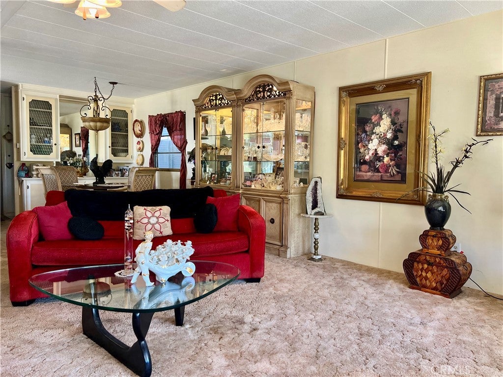 BEST GOLF COURSE VIEW! Great manufactured home sitting elevated up on the golf course at the desired senior 55+ senior community of Arroyo Fairways in East Hemet. Relax either in your living room or on the back patio enjoying your favorite morning or afternoon beverage. The home has been well taken care of and feels open & spacious. Kitchen is a perfect size and opens up to the dining area with a built-in hutch. Master bedroom has a walk-in closet & master bathroom with step-in shower. Guest bathroom with a tub is right across from the second bedroom with built-in closets & drawers. Inside laundry room with access to the full length covered carport & a setting area great for entertaining, 2 sheds and a BBQ for outdoor cooking. In addition to having a 9-hole golf course, the park amenities include heated pool & spa, clubhouse for entertaining & games and kitchen facilities for community activities include bingo, billiards, shuffleboard, ping pong & multimedia room. Outdoor activities include horseshoes, BBQ area & a dog park. Park has a separate building with a laundry facility. Great location & commuter friendly and close to shopping, restaurants & medical. Retirement at its finest!