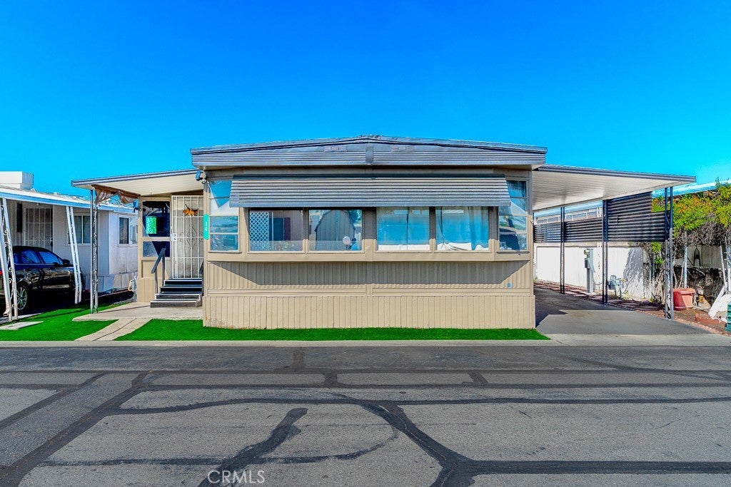 Welcome to this charming and affordable 2 bed and 2 bath home located in Devonshire Downs 55+ serene home park community! Primary bedroom is super spacious, has a walk in closet and features a full generous bathroom. This manufactured home comes with an open living space with a wide dining area and breakfast bar. Also, as a plus, the home does have an amazing and spacious sunroom right on the side of the manufacture home that can be used as storage or many more possibilities. Patio also comes with a spacious shed for storage. As if this wasn't enough, the community offers great amenities such as a sparking pool, a relaxing clubhouse and a billiard room. Conveniently situated near shopping, dining, casinos, and golf courses!! This home also offers easy access to both desert and mountain getaways. Just a drivable to distance to Palm Springs, Los Angeles, San Diego or Orange County!!Scheduled your private showing today!!