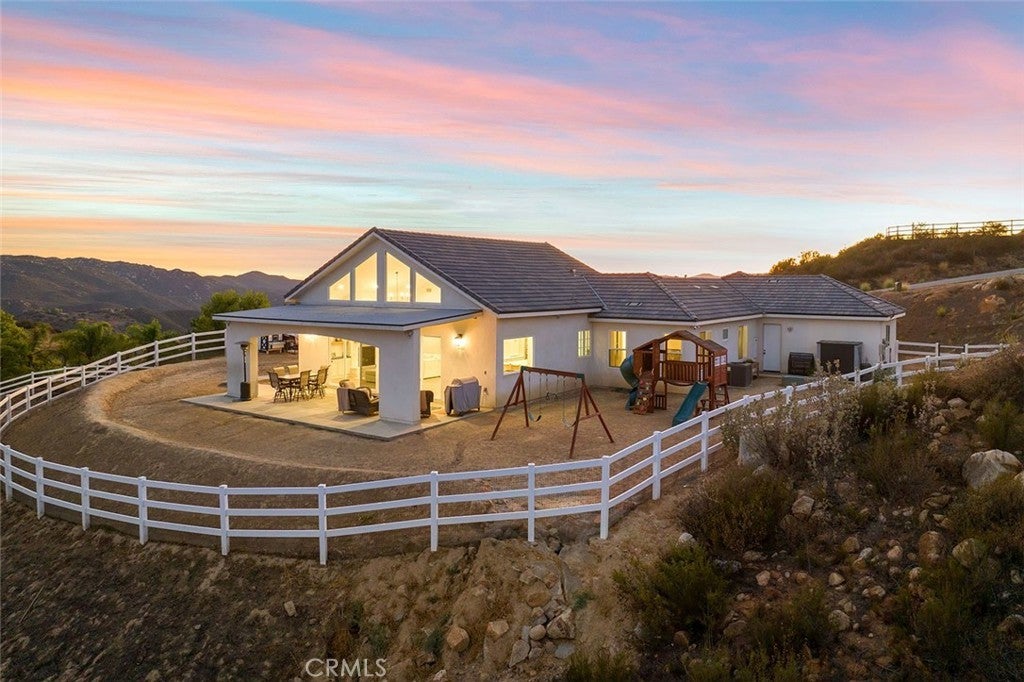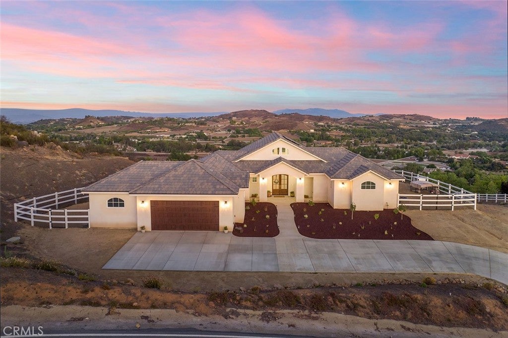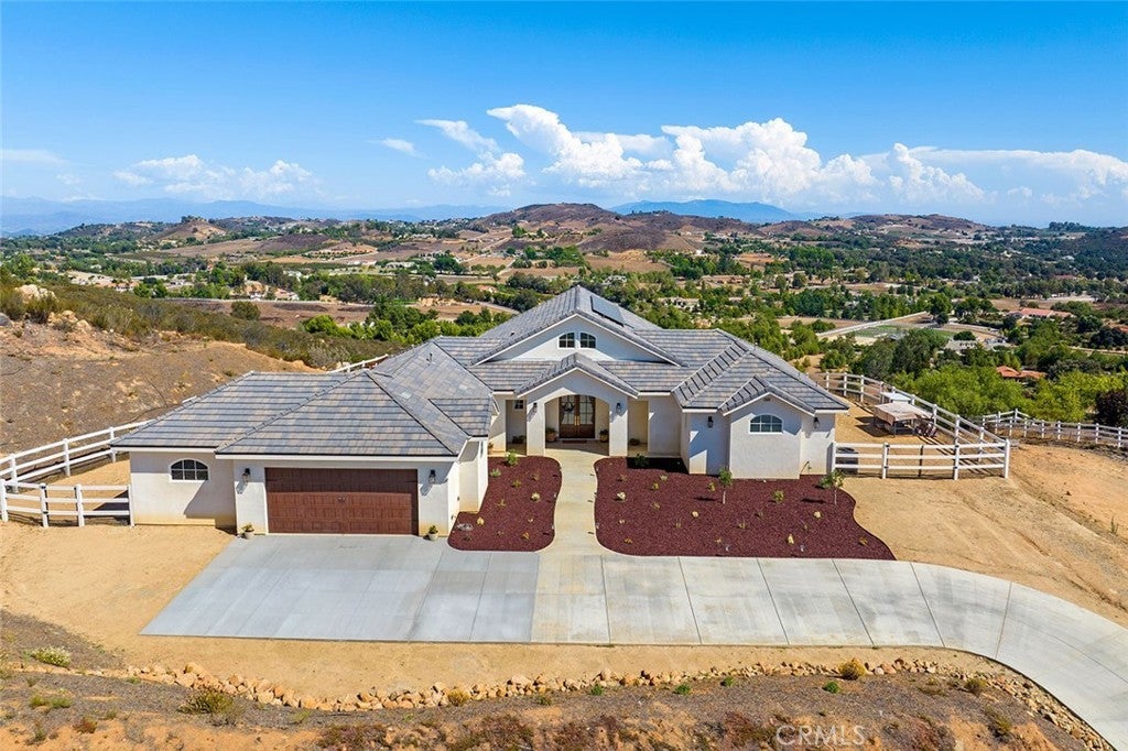 NEW CONSTRUCTION! SINGLE-STORY 5-ACRE ESTATE WITH MASSIVE VIEWS IN THE HEART OF LA CRESTA! Step into this on-trend home with its 20-foot family-room ceiling and gaze through the floor-to-ceiling wall of windows to unobstructed views of this prestigious Santa Rosa Plateau ranch community, the Murrieta/Temecula Valley & beyond to the majestic mountains, including Mounts San Jacinto & Palomar. Imagine sipping your daily coffee, watching mesmerizing sunrise views and spotting Temecula Wine Country’s hot-air balloons! This home was built with love, evident with every designer detail, including a chefs’ kitchen with double Thermador ovens, Subzero fridge, 2 dishwashers, 6-burner + griddle gas cooktop, pot-filler & massive island. The high-end materials, consistent throughout the home, include exposed wood beams, floating shelves, stylish barn doors, designer hardware, trendy lighting & luxurious marble countertops. Retreat to your primary suite with high ceilings, large slider to the backyard, epic views and a beautifully appointed primary bathroom with free-standing soaking tub, walk-in shower & generous walk-in closet. Two guest bedrooms reside on the other side of the home, and just off the Great Room, you will find a sweet bonus room with skylight and barn doors – perfect for office, home schooling or hobbies. Through the well-appointed laundry room, find direct access to the garage and spacious game/bonus room. Built as a forever home, this property offers lucky new owners an opportunity to live in comfort and luxury while making the grounds your own. Ready for your own stamp, the back yard, already appointed with a covered patio, ceiling fans and spa outlet, is perfectly situated for a future infinity pool, outdoor kitchen and/or unforgettable entertainment area – all with VIEWS VIEWS VIEWS! Paid for Solar and position on one of La Cresta’s best view streets are the icing on this adorable single-level Plateau gem! *****Discover the Santa Rosa Plateau Lifestyle…5-acre minimum parcels (10-acre minimum. in SR West), just minutes to schools, restaurants, hospitals, grocery stores, 15 Fwy & Temecula Wine Country. Enjoy this peaceful ranch community w/no commercial businesses, robust social activities, miles of private community trails & 1000s of acres of Ecological Reserve…All less than 1.5 hours from LA, SD, OC, Palm Springs & Big Bear. Discover the country, yet convenient, lifestyle of La Cresta, Tenaja & the Communities of the Santa Rosa Plateau!