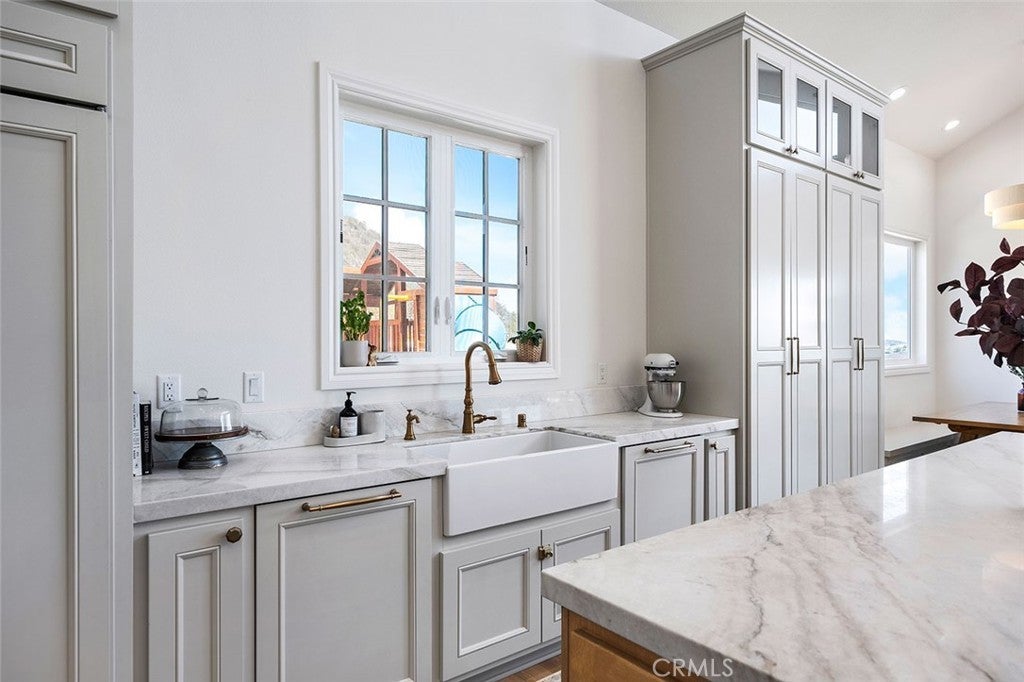 • Interior FeaturesBeamed Ceilings, Breakfast Bar, Built-in Features, Ceiling Fan(s), Cathedral Ceiling(s), High Ceilings, Open Floorplan, Stone Counters, Storage, All Bedrooms Down, Bedroom on Main Level, Main Level Primary, Primary Suite, Walk-In Closet(s)
