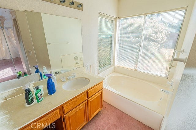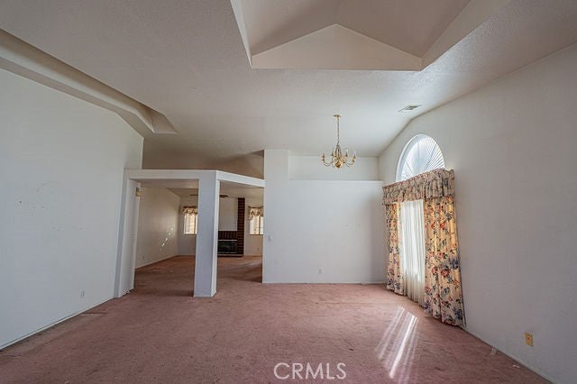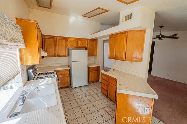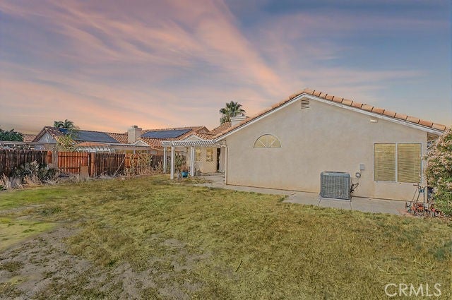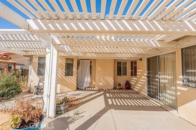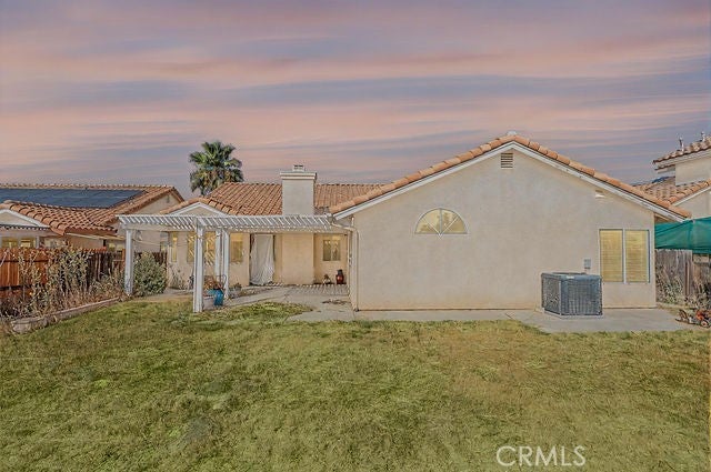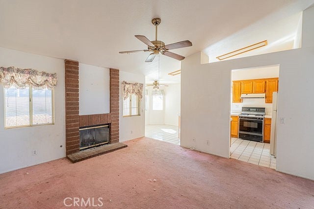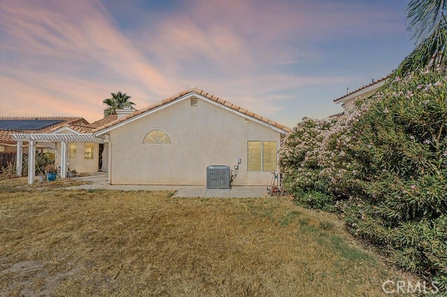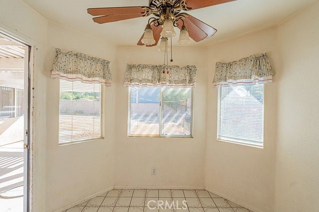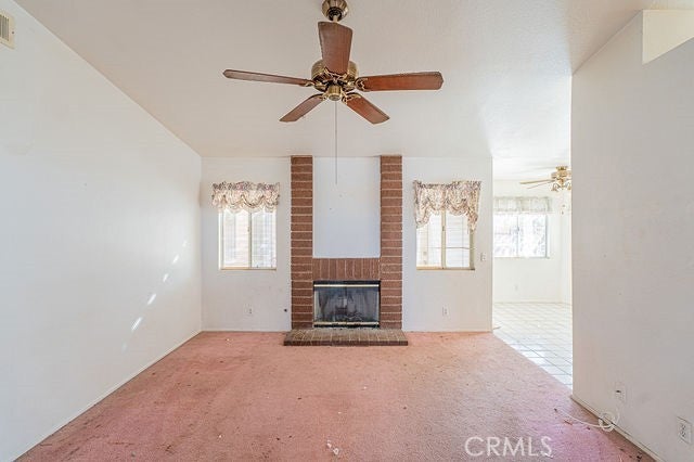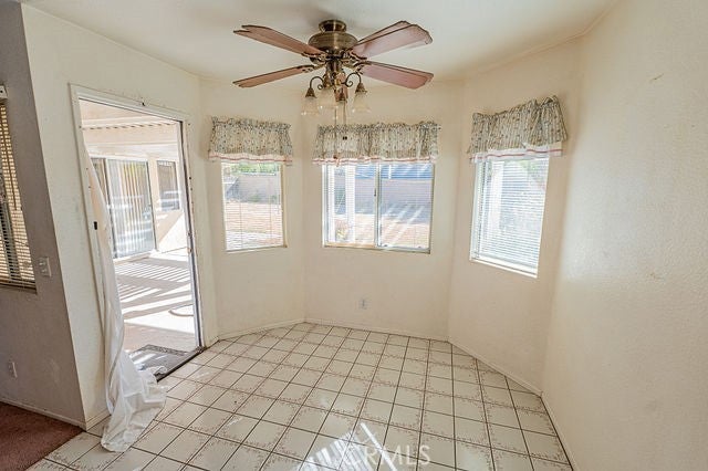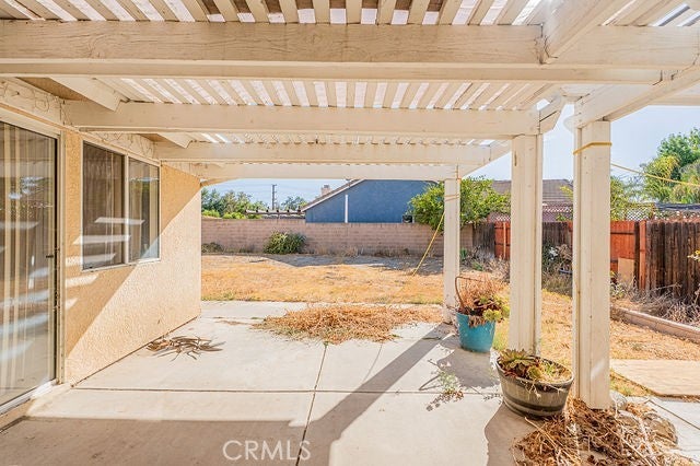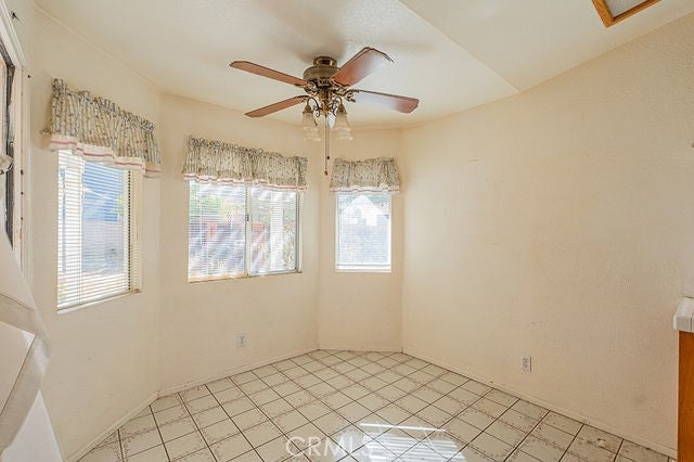 Single-story home located in Hemet with a three-car garage and a spacious backyard that includes a covered patio. Property record shows 4 bedrooms, but was converted to a primary suite den, which can be converted back to a 4th bedroom if owner desired. The interior features carpet throughout, ceiling fans, and a living room with a fireplace. The floor plan offers both a separate living room and a dining nook off the kitchen. The primary suite includes a bathroom with a separate tub and shower. Additional features include multiple secondary bedrooms, ample natural light, and a functional layout designed for comfortable living.