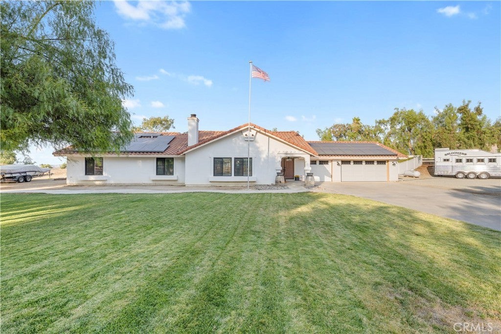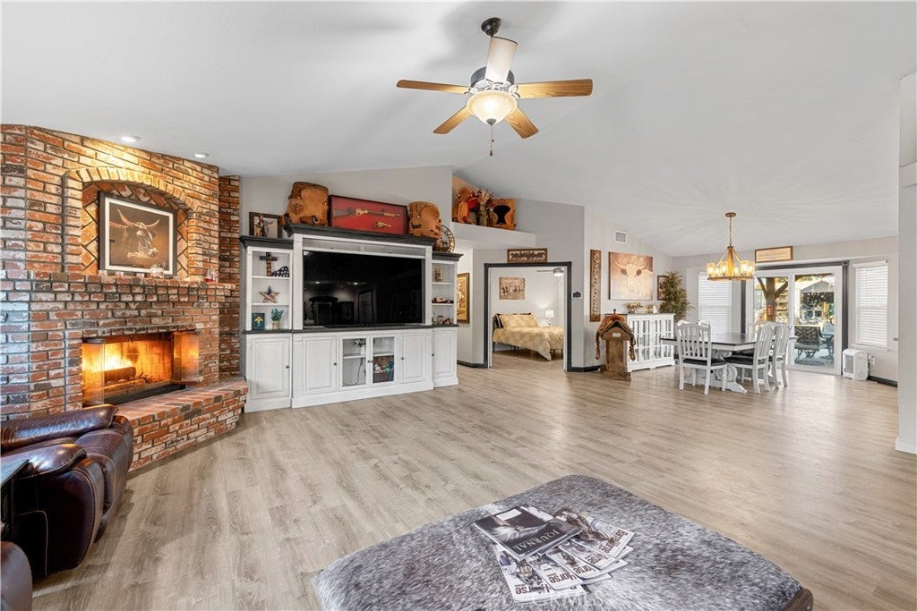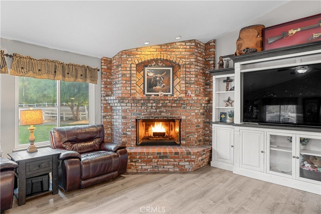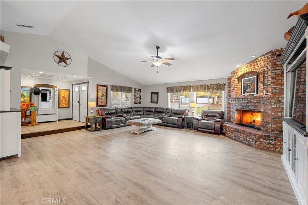 Welcome to this stunning home tucked away in the highly sought-after Equestrian Community of Gavilan Hills in Perris. Perfectly designed for those who value privacy, comfort, and equestrian lifestyle, this neighborhood offers private horse trails and a private arena reserved exclusively for homeowners. From the moment you arrive, you are greeted by a manicured lawn and inviting curb appeal. Inside, Sterling Oak vinyl plank flooring flows seamlessly throughout the home, enhancing the light-filled, open floor plan. The airy kitchen features granite countertops and brand-new sliding doors, and a functional layout designed for entertaining and everyday living. Each bedroom is generously sized, while the bathrooms offer ample space, with ceramic tile countertops and upgraded Luxstone shower walls. The family room is the heart of the home, complete with a brick mantle fireplace. Recent upgrades include dual-pane UV-reflective windows, new stucco and exterior paint, a new gate, and new garage doors. The garage has been thoughtfully converted into an office/gym with its own AC, providing versatile use for today’s lifestyle. Step outside to your private backyard retreat, featuring a sparkling pool, relaxing hot tub, and a functional barn ready for your horses. With a property just shy of 2 acres and thoughtful upgrades, resort-style amenities, and true equestrian features, this home presents a rare opportunity to live your dream in Gavilan Hills.