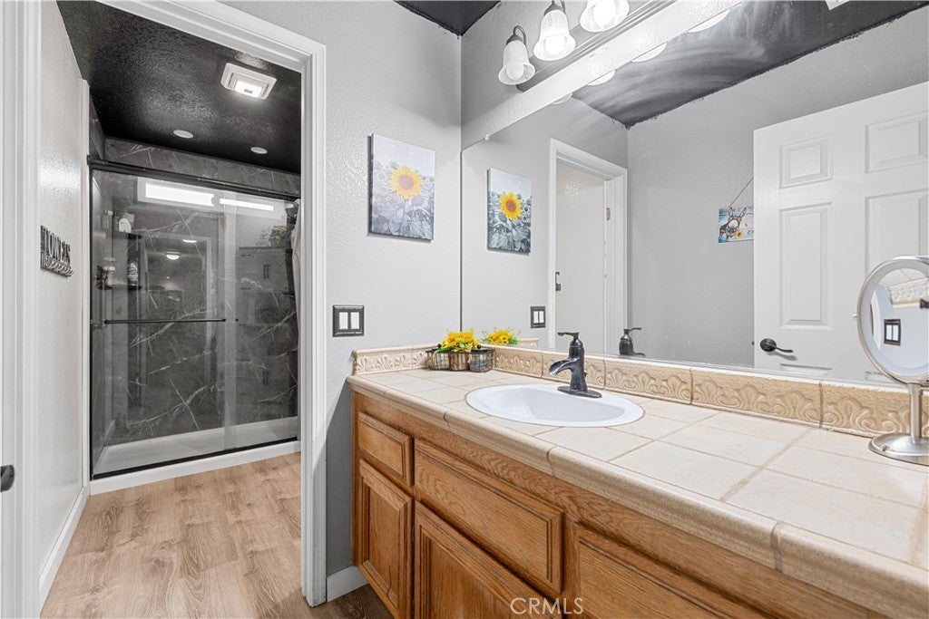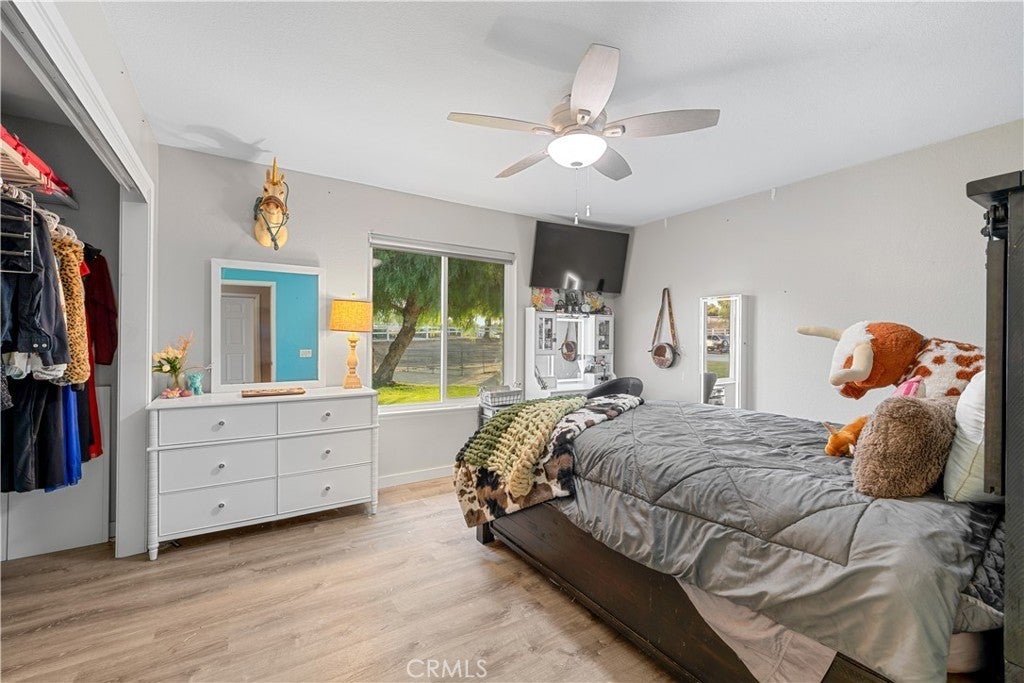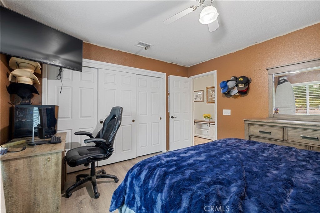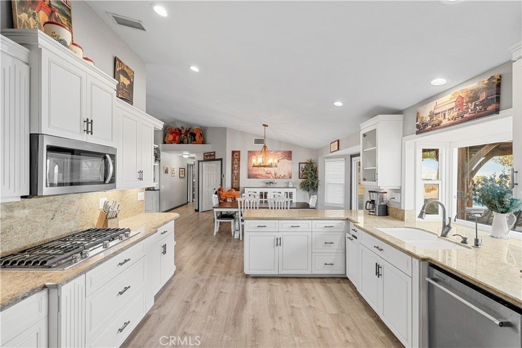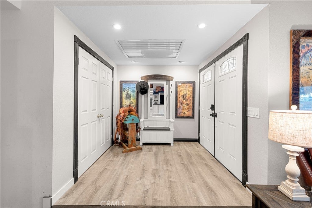 Welcome to this stunning home tucked away in the highly sought-after Equestrian Community of Gavilan Hills in Perris. Perfectly designed for those who value privacy, comfort, and equestrian lifestyle, this neighborhood offers private horse trails and a private arena reserved exclusively for homeowners. From the moment you arrive, you are greeted by a manicured lawn and inviting curb appeal. Inside, Sterling Oak vinyl plank flooring flows seamlessly throughout the home, enhancing the light-filled, open floor plan. The airy kitchen features granite countertops and brand-new sliding doors, and a functional layout designed for entertaining and everyday living. Each bedroom is generously sized, while the bathrooms offer ample space, with ceramic tile countertops and upgraded Luxstone shower walls. The family room is the heart of the home, complete with a brick mantle fireplace. Recent upgrades include dual-pane UV-reflective windows, new stucco and exterior paint, a new gate, and new garage doors. The garage has been thoughtfully converted into an office/gym with its own AC, providing versatile use for today’s lifestyle. Step outside to your private backyard retreat, featuring a sparkling pool, relaxing hot tub, and a functional barn ready for your horses. With a property just shy of 2 acres and thoughtful upgrades, resort-style amenities, and true equestrian features, this home presents a rare opportunity to live your dream in Gavilan Hills.