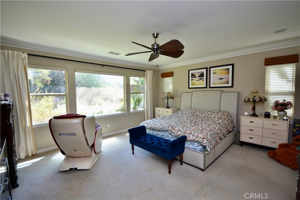 Incredible opportunity to own this formal model home, and it qualifies for a $20,000 grant which may be used for downpayment and/or closing costs - a single level on a 1/4 acre lot, LOADED with amazing upgrades and built ins, all at a price that won't break your budget! Top rated Temecula schools, 4 bedrooms, 3 bathrooms, and gated, private front courtyard! Enter to the grand foyer next to an impressive formal dining room with floor to ceiling built-ins, wine racks and wine fridge. Rear of the home is an expansive great room with a well-appointed kitchen and breakfast nook, with center island, pantry, upgraded appliance package, loaded with cabinet and counter space. All of this open to the family room with more luxury built-ins, fireplace and more. Spacious primary suite with luxury 5 piece bath, island soaking tub and walk in closet. Down the hall, secondary bedrooms and bathrooms, and a show stopping den/family room with built in cabinetry, couch surround, theater speakers and space for large TV. Quiet location close to parks, schools, shopping and award winning wineries. Easy freeway access for commuters to both the 15 and 215 freeways.