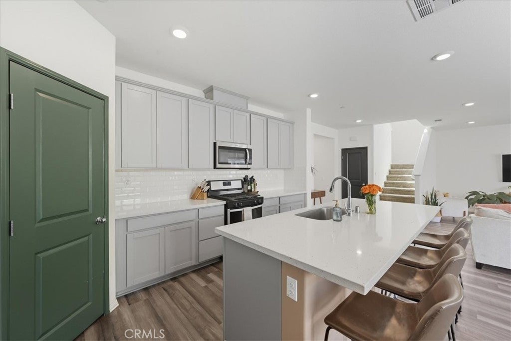 BACK ON THE MARKET!! NO FAULT TO SELLER, BUYER COULDN'T PERFORM & HOME INSPECTION REPORT AVAILABLE!!! Here is your SECOND CHANCE to call this Home Sweet Home with a $15k Price Improvement!!! First Time on the Market & Move-In Ready! WASHER, DRYER, KITCHEN FRIDGE INCLUDED!! Welcome HOME to this STUNNING 4-Bedroom, 3-Full Bathroom, Two-Story home located in the Highly Desirable Summerly Community! This home boasts a modern transitional design, featuring an open-concept kitchen with sleek gray cabinetry, quartz countertops, white subway tile backsplash, and stainless steel appliances. Luxury vinyl plank flooring flows seamlessly into the bright and airy living and dining spaces, creating the perfect balance of style and comfort. Neutral tones paired with natural light make the home feel warm, inviting, and move-in ready. Features You’ll Love: • Upgraded Throughout – Quartz countertops, luxury vinyl plank flooring, and plush carpet in bedrooms, stairs, upstairs hallway and epoxy-coated garage flooring. • Functional Floor Plan – Open concept kitchen and living area, perfect for entertaining. Plus, a bedroom and full bath downstairs for guests or multi-generational living. The Primary Suite has a walk-in closet. • Garage: The two-car garage features a durable epoxy-coated floor, offering a sleek look that is easy to clean and built to withstand daily use. Perfect for parking, storage, or a home gym. There is also a Tankless water-heater and Pre-wire for an electric vehicle charger. • Entertainer’s Backyard – Concrete patio and lush green lawn, ready for BBQs, family gatherings, and outdoor fun. • Energy Efficient – This home comes with solar, helping you save on energy costs while living sustainably. • Move-In Ready – Stainless steel kitchen appliances, refrigerator, washer, and dryer all stay with the home! The Summerly Lifestyle: Live where every day feels like a vacation! Summerly offers: • 3 sparkling pools + relaxing spa • Splash pad • Modern clubhouse • 3 beautifully maintained parks • Basketball court • Exciting year-round community events All with a low HOA of just $135/month! Don’t miss this opportunity to own a home in one of Lake Elsinore’s most vibrant communities. Schedule your private showing today!