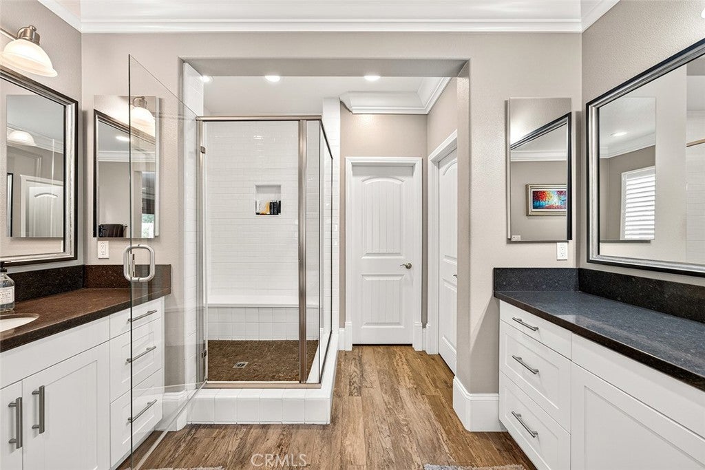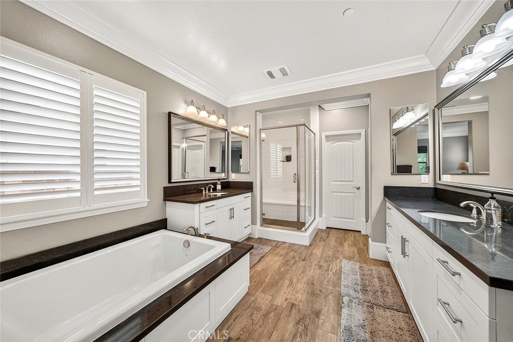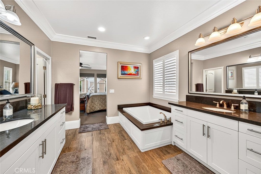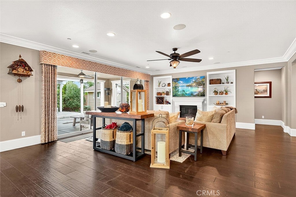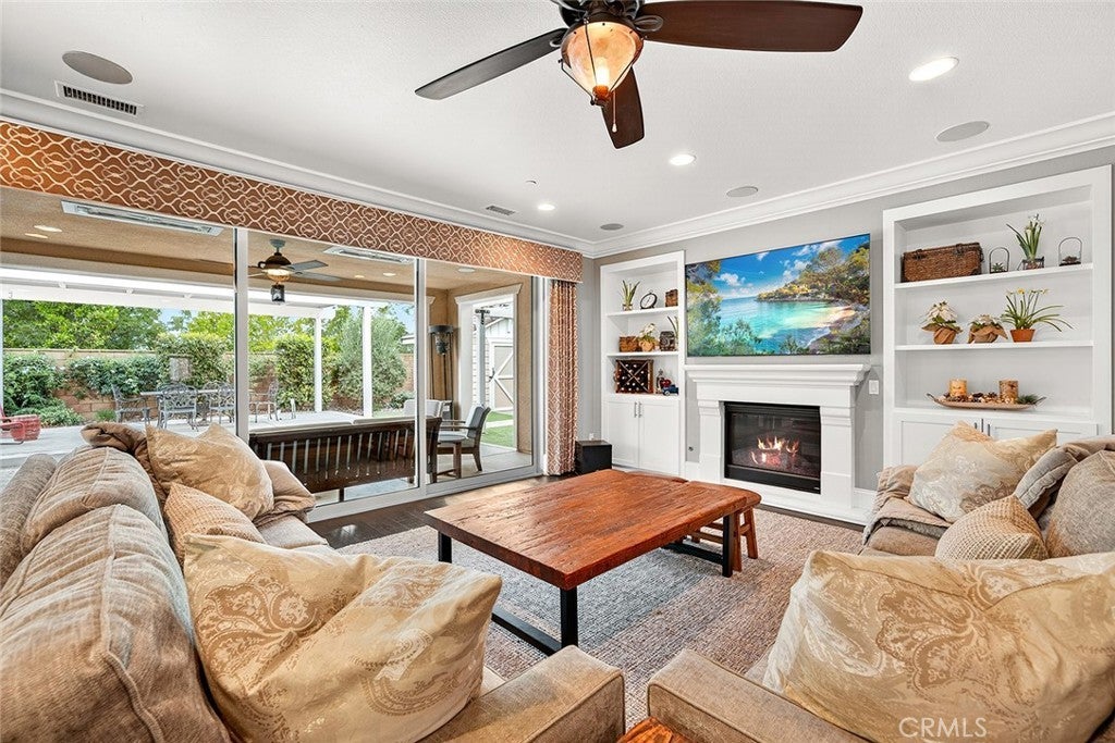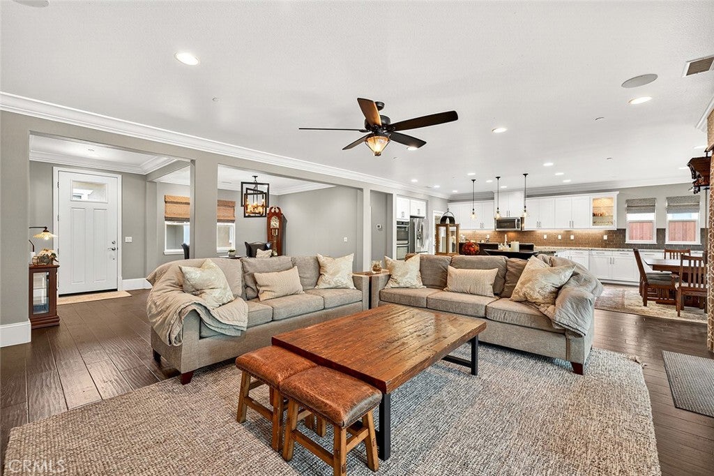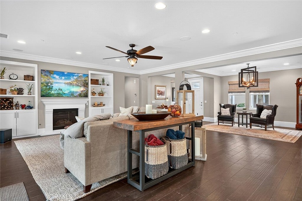 Back on Market- Buyer could not perform.**Single Story Beauty with extensive upgrades in the highly desired community of Heritage Lakes** Open the door to the courtyard and step into this stunning 4 bedroom, 2.5 bathroom, single-story home where style meets functionality. The open great room floor plan is enhanced by the hardwood floors, wood-look tile in the bathrooms, laundry, and the custom crown molding and baseboards throughout. The neutral colors enhance the calming flow. Spread out over 2,785 square feet. This home exudes warmth and sophistication. The kitchen is a chef's dream with a large island, double ovens, beautiful backsplash, and high end cabinetry. Enjoy cozy evenings in the living area with custom built-ins flanking the fireplace. You will appreciate the seamless indoor-outdoor living provided by the California room slider doors. The outdoor space is an entertainer's dream. Listen to the water feature, sit around the firepit, truly relax in a low maintenance yard that's there for you. Thoughtful upgrades inside and out include custom light fixtures, fans, and heaters built into the patio ceiling for year round comfort. Car enthusiasts and organizers alike will appreciate the 3 car tandem garage with New Age Pro Series cabinets and a durable epoxy floor finish. This home is truly turnkey with every detail considered from the front to the back. The unbelievable amenities in Heritage Lakes include two pool areas, multiple parks, walking trails, a lake, and a great community center. With all this home has to offer, don't miss the opportunity to make this gem yours!