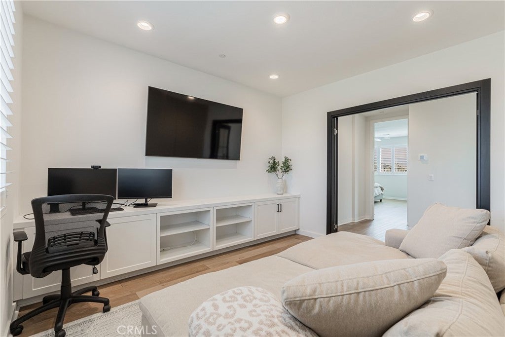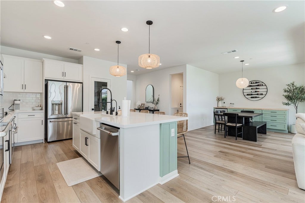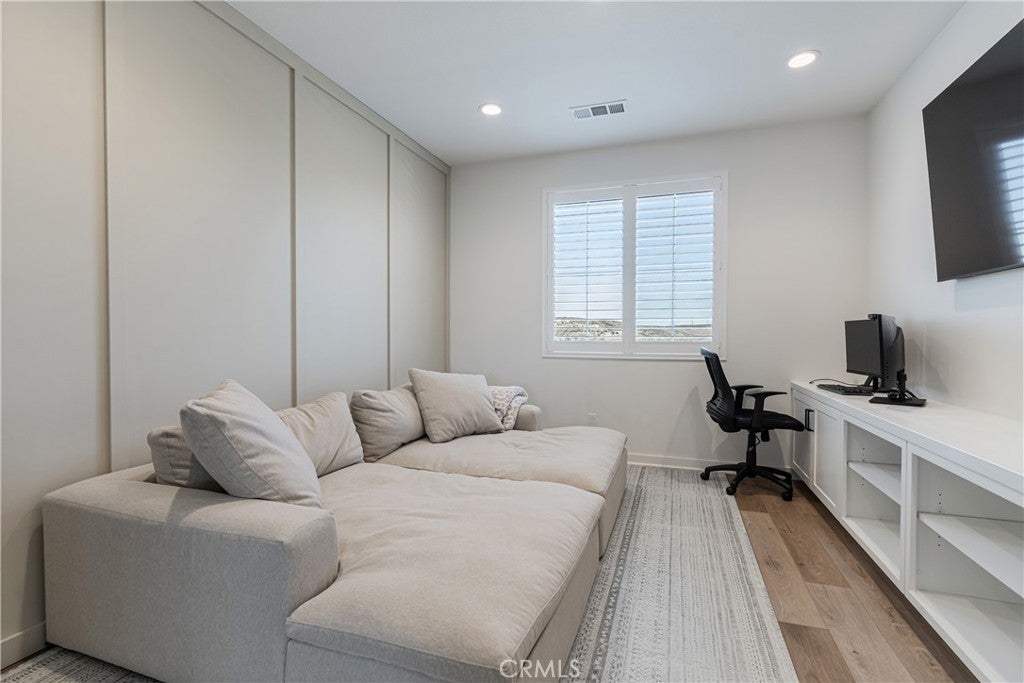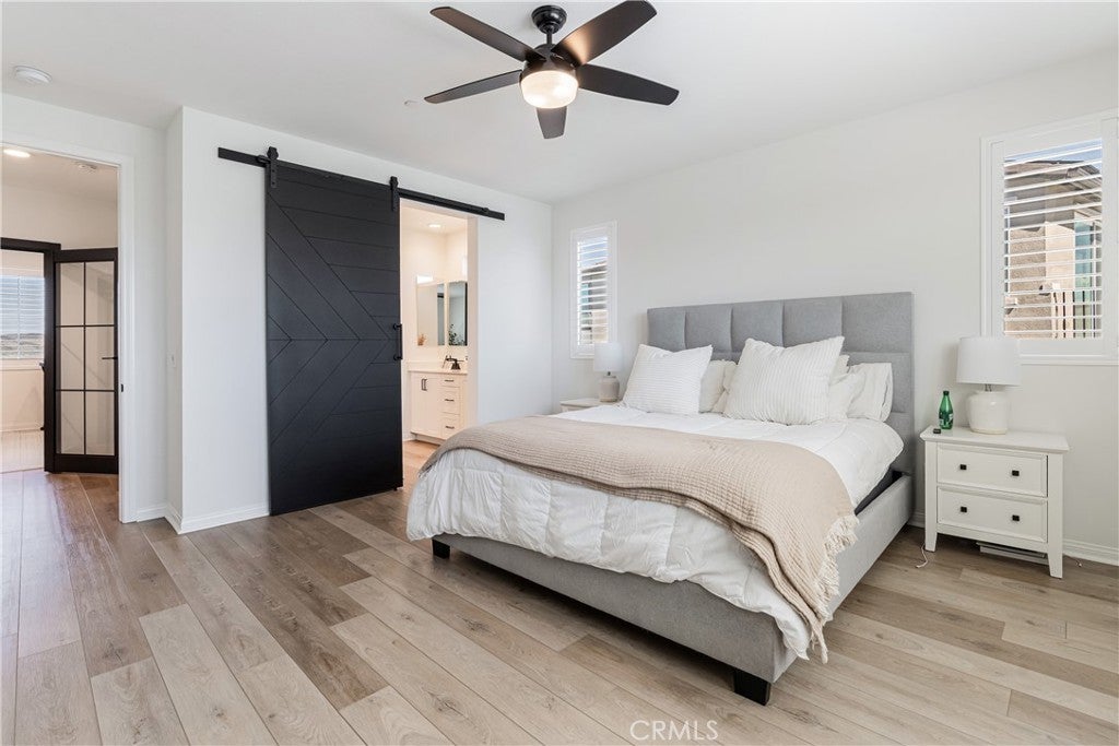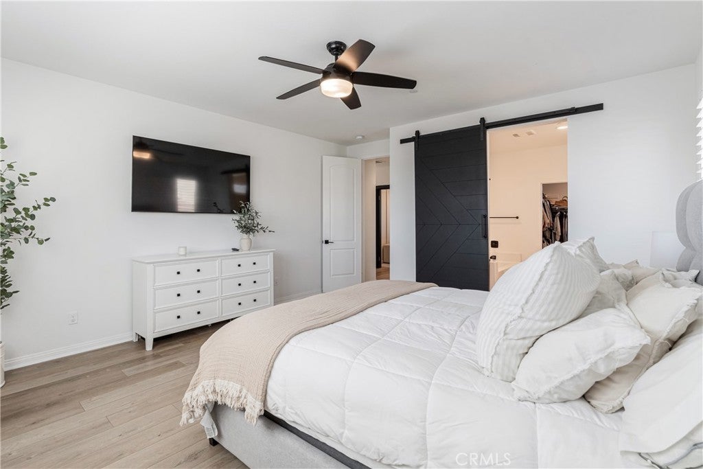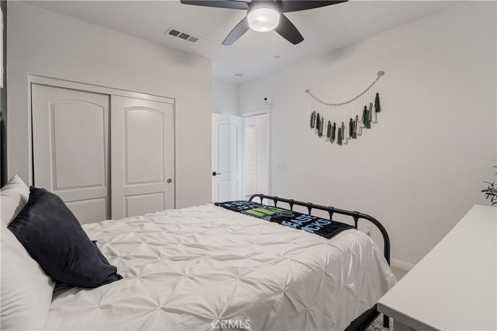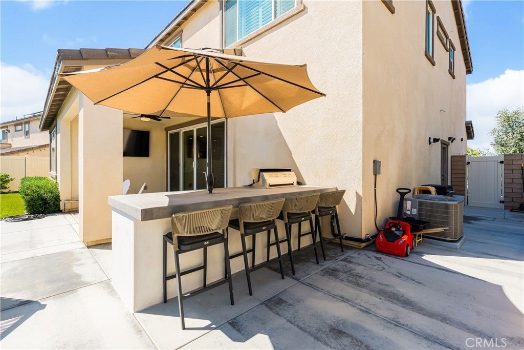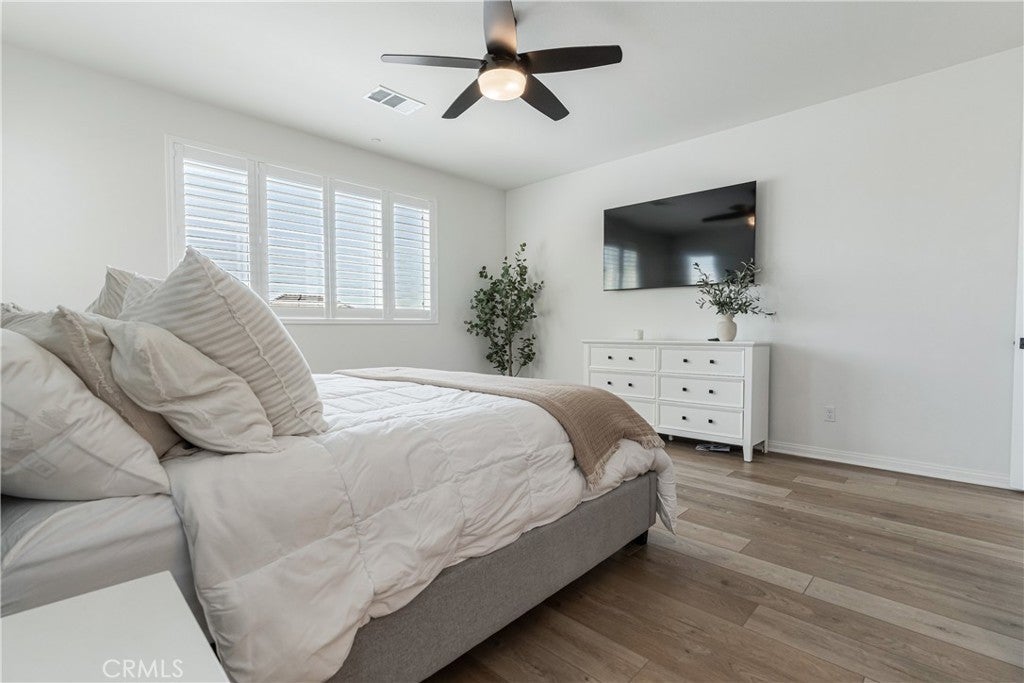 Welcome to your new home in Temecula's master planned community of Sommers Bend, where modern living meets thoughtful design. This remarkable 4-bedroom, 3-bathroom home offers a turn-key & move-in-ready experience. From the moment you arrive, you'll feel a sense of space and tranquility, thanks to the single-loaded street out front elevating this home’s curb appeal with uncrowded views of the vast hills across the street and stunning mountains in the distance. Step inside and notice the natural flow of the open-concept layout, designed for both daily life and effortless entertaining. Every detail has been carefully considered, from the high-end quartz countertops and soft-close cabinetry to the stunning fireplace with a custom mantle that anchors the living area. The kitchen is a chef's dream, featuring a gorgeous large center island with shiplap accent, counter seating, pendant lighting, farmhouse sink, stainless steel appliances, tile backsplash and large walk-in. The home offers incredible versatility. There is a desirable downstairs bedroom & bathroom perfect for family or a guest room. Upstairs, a spacious enclosed loft with elegant French doors provides the perfect flex space for a home office, media room, or even an extra bedroom. The primary suite is a true sanctuary, complete with a beautiful barn door that opens to a luxurious, spa-inspired bathroom. Step outside to a private low maintenance backyard which is perfect for year-round enjoyment and entertainment. The elevated lot provides incredible privacy, as the home sits high above the rear neighbors. Featuring a covered patio, a custom-built BBQ island with counter seating, artificial turf, retaining wall, extra hardscape and ambient low-voltage lighting to set the mood and tons of blue skies to give you a wonderful vantage from all over. There are two dwarf lemon trees, a naval orange, a Texas grapefruit, a lime and a mandarin tree neatly manicured and at your disposal. Enjoy modern comforts with a fully paid solar system, stylish plantation shutters throughout, LVP flooring, epoxy garage finish, EV charger hook-ups, and premium Delta matte black fixtures that add a sleek, consistent touch throughout. As a resident of Sommers Bend, you'll also have access to exceptional community amenities, including resort-style pools, amazing clubhouse, fitness center, state of the art sports parks, and scenic trails—all just minutes from Temecula's best wineries, dining, and Temecula’s top-rated schools!