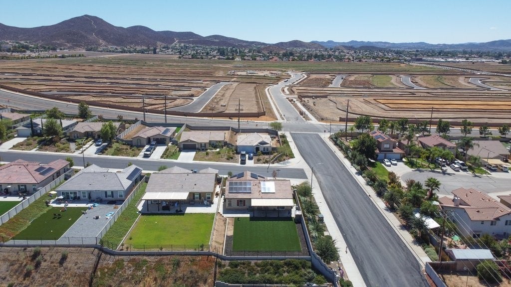 Built in 2022, this single-story residence offers the perfect balance of modern comfort, style, and low-maintenance living in one of Menifee’s peaceful neighborhoods. Spanning 1,575 square feet, the home features three spacious bedrooms, two full bathrooms, and an open-concept floor plan designed with everyday functionality in mind. The living areas flow seamlessly, complemented by central A/C and heating, a durable tile roof, and an attached two-car garage. Set on a generous 10,018-square-foot lot, the property offers ample outdoor space with a tranquil mountain backdrop—ideal for both relaxation and entertaining. With modern finishes, efficient systems, and a low HOA, this home presents an excellent opportunity for comfortable living in a quiet community.