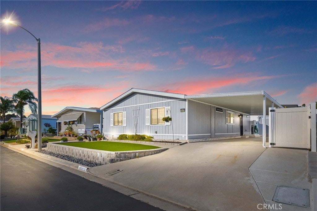 Beautiful 3 bedroom 2 bath home in the 55+ community of Warm Spring Knolls. YOU OWN THE LAND! Move-in ready condition with vinyl plank flooring and brand new carpet, plus updated kitchen and bathrooms. You will love the open floor plan and spacious rooms with plenty of space to entertain. Primary Suite is on one end of the home, with the 2 secondary bedrooms on the other side. Ceiling fans throughout, many nice details such as recessed lighting and crown molding. Low maintenance/ drought-tolerant landscaping with artificial grass in both the front and back yard. Beautiful stone patio, block planters with plenty of room for fruit trees or garden. Vinyl fencing around the property with the backyard completely fenced in. Large carport plus shed for all of your outdoor storage needs. You will love this sparking well-maintained home, within walking distance to the community pool, spa & clubhouse. Low HOA and Low Property taxes!