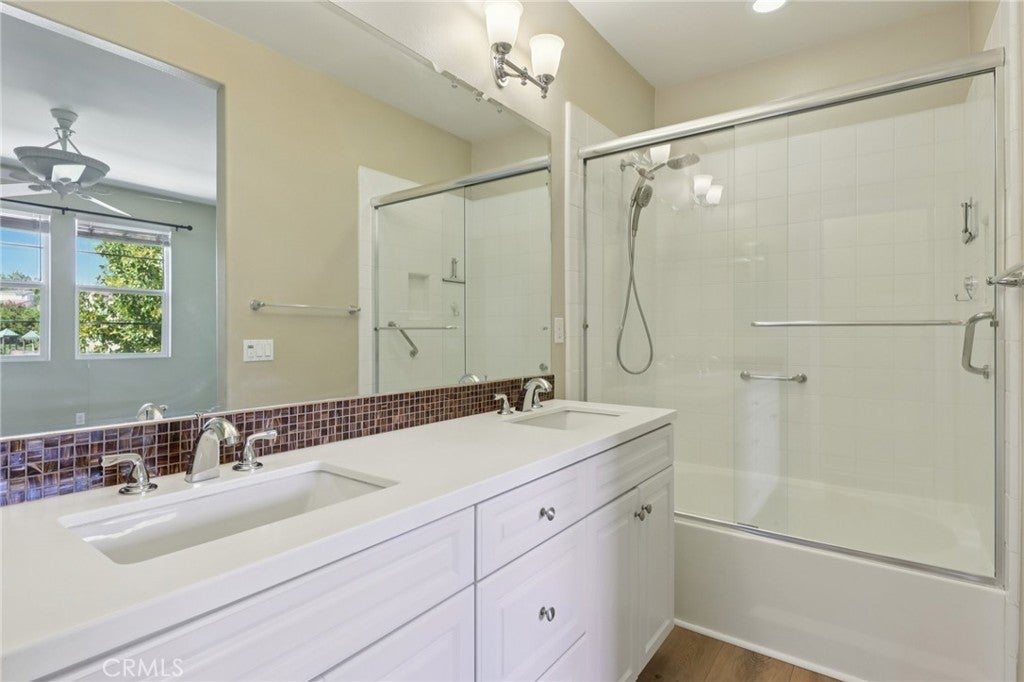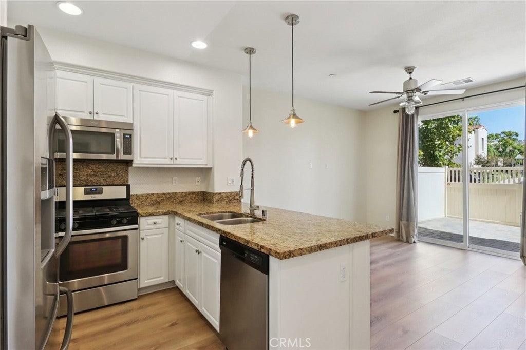 Welcome to this stunning home that feels brand new, offering stylish upgrades and a thoughtfully designed layout. A private gated front patio greets you, leading inside to an inviting open-concept living, dining, and kitchen area. The kitchen shines with granite countertops, penny tile backsplash, fresh white cabinetry, stainless steel appliances, and bar seating, making it a perfect spot for entertaining. The main floor also includes a convenient powder room and direct access to the 2-car garage with a new epoxy floor and overhead metal storage shelf. Upstairs, you’ll find three well-sized bedrooms and two full bathrooms, all with ceiling fans, including a primary suite with a walk-in closet and en suite bath featuring a dual sink vanity and large soaking tub. The laundry closet is also conveniently located on the second level. Enjoy resort-style amenities in the Allegra and Aldea at Paseo Del Sol community, offering a sparkling pool, spa, and beautifully maintained grounds. With a prime location near shopping centers, dining options, schools, and the hospital, this home combines modern comfort and convenience in one perfect package.