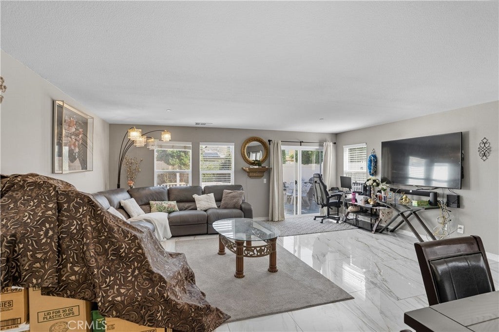Welcome to this beautifully maintained 3 bedroom, 2 bathroom home built in 2014, offering 1,800 sq. ft. of living space on a generous 6,534 sq. ft. lot and PAID OFF SOLAR Property Features:     •    Bright, open-concept floor plan perfect for modern living     •    Spacious kitchen and dining area flowing into the family room     •    Comfortable bedrooms including a private primary suite     •    Energy-efficient features from newer construction     •    Two-car garage and well-sized backyard, ideal for entertaining Location Highlights:     •    Situated in a quiet cul-de-sac near community amenities     •    Walking distance to a park and skate park     •    Easy access to the 215 freeway for commuting convenience     •    Close to shopping, dining, and schools