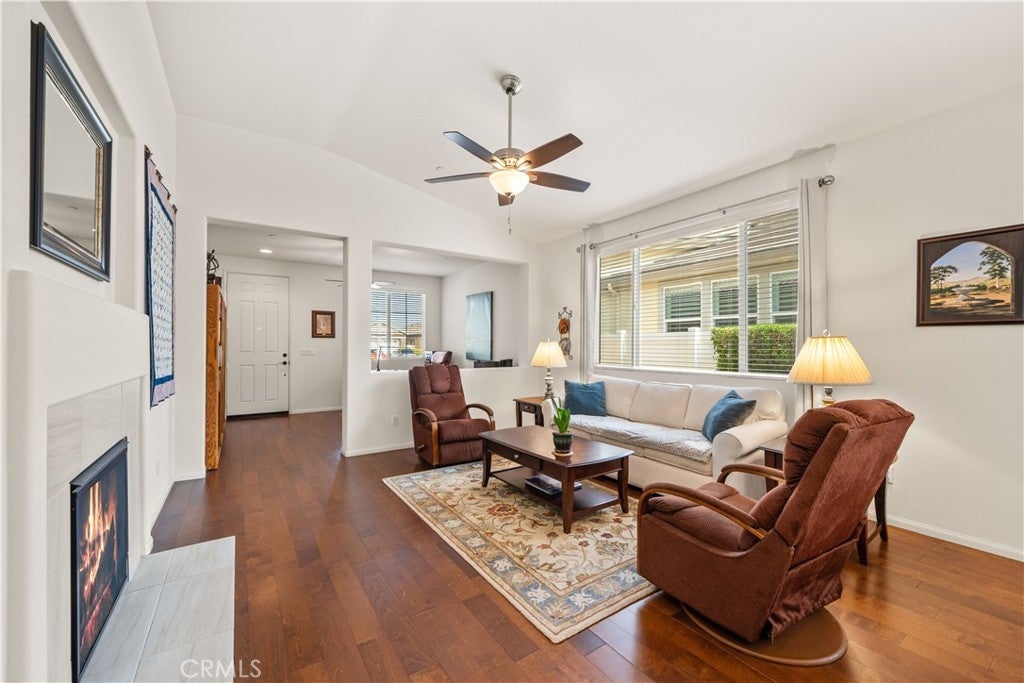 Discover the perfect blend of comfort and elegance in this stunning home, nestled in the desirable 55+ gated community of Orchid. Tucked away on a peaceful cul-de-sac, this property offers a serene, low-maintenance lifestyle that’s sure to impress. Step inside to a welcoming formal dining area and a spacious living room with a cozy fireplace, creating the perfect backdrop for gatherings or quiet evenings at home. The gourmet kitchen is a true centerpiece, featuring quartz countertops, stainless steel appliances, upgraded cabinetry, a walk-in pantry, and a generous island overlooking the expansive great room. For added convenience and peace of mind, the home is equipped with a whole house soft water system and a reverse osmosis unit under the kitchen sink, delivering clean, high-quality water throughout. The family room, located just off the primary bedroom, offers seamless access to the private backyard, where an Alumawood patio cover with ceiling fans provides year-round comfort for outdoor relaxation. Retreat to the luxurious primary suite, thoughtfully designed with dual sinks, a walk-in shower, and a spacious walk-in closet. Additional highlights include a conveniently located laundry area inside the two-car garage, as well as ample guest parking on the street. The community offers an abundance of amenities, including a sparkling pool, jacuzzi, clubhouse, and tennis courts, all just across the street from a larger park. And with Menifee’s best shopping, dining, and entertainment only minutes away, this home truly has it all. Don’t miss your chance to experience the charm of Rim Creek — schedule your private tour today!