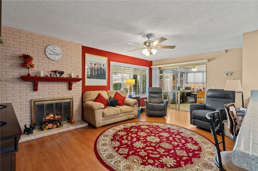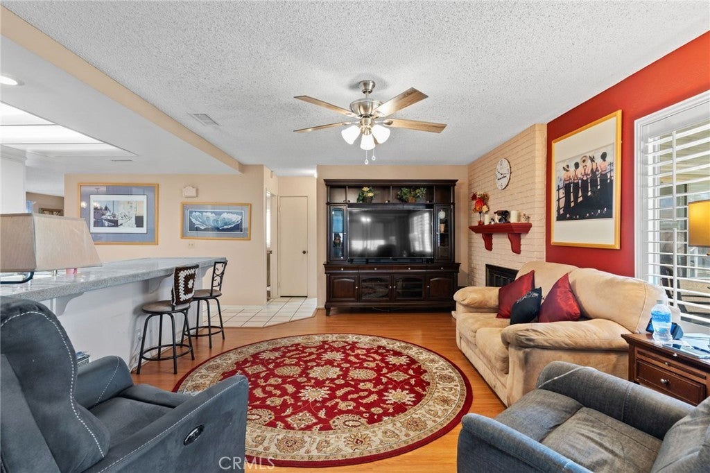 Price Reduction!!!!! Wonderful 55+ senior home with No HOA and very low taxes in a quiet neighborhood away from the main busy roads in Menifee. Beautiful curb appeal and a covered front porch area perfect for sipping coffee and relaxing before heading into the spacious front living room and dining room. Walking into the kitchen there is a massive kitchen island with plenty of storage cabinets and a newer refrigerator and beautiful sightlines to the landscaped backyard. The kitchen is open to a secondary living room with a cozy fireplace which also leads to another enclosed lanai area that is currently being used as an office. There's a large guest room with a full bathroom with newer vanity and fixtures and the primary bedroom has it's own ensuite bathroom as well. There's multiple ceiling fans in almost every room and solar panels for energy efficiency! All the windows have window treatments and there's a landscaped backyard with fruit trees, covered patio, cinderblock fencing and a shed for convenience. The roof is about 17 years old and the AC unit is about 7 years old and all the appliances with stay for the buyer!