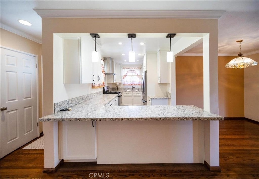 Welcome to 3615 W 187th St! This beautifully maintained 3-bed, 2-bath home offers 1,551 sq. ft. of living space with a light and airy flow throughout. The bright kitchen features white cabinetry, granite countertops, stainless steel appliances, a modern hood range, ample storage, and a breakfast bar that opens directly to the dining area with a cozy fireplace and elegant crown molding. From there, the space flows naturally into the spacious living room, which offers plush carpet for comfort, while wood flooring runs throughout the rest of the home. Sliding glass doors lead to a private backyard with no rear neighbors, complete with a concrete patio and fixed awning—perfect for relaxing or entertaining. Down the hall are three spacious bedrooms and one full bath, while the second bath is conveniently located off the living room and kitchen. Ideally situated in Northwest Torrance near Columbia Park, Torrance Unified schools, and shopping. Don't miss the opportunity to make this charming home yours!