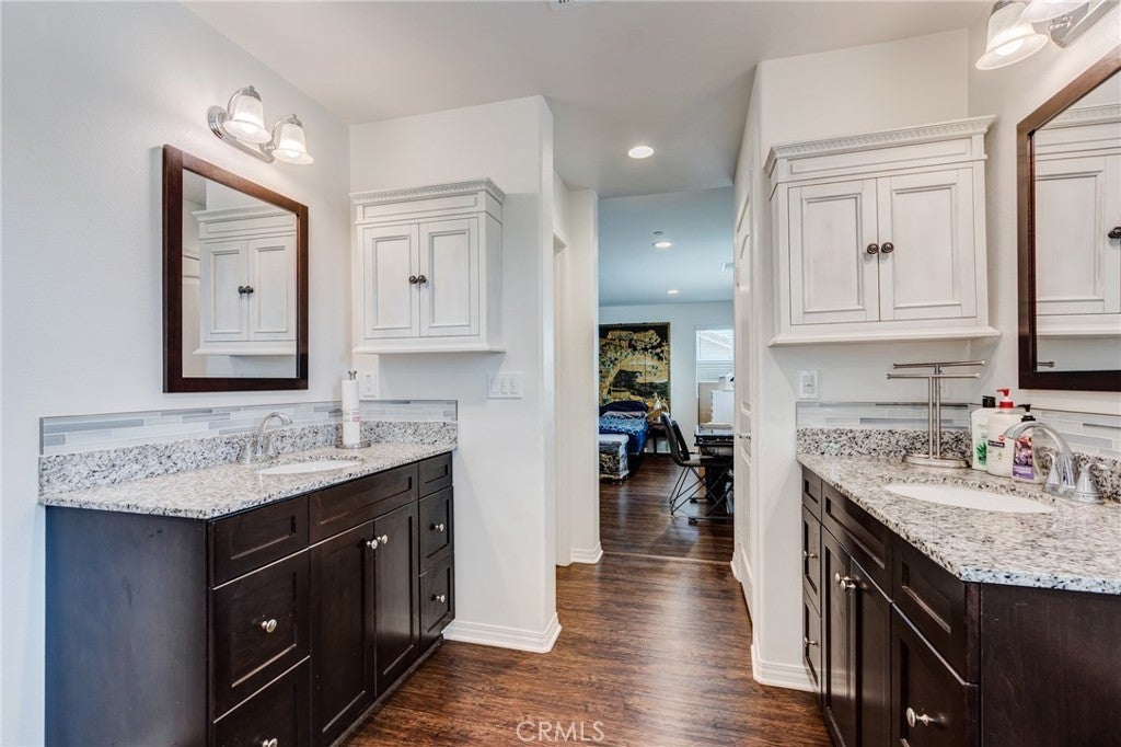 JUST REDUCED!! Gorgeous “Model Perfect” Murrieta 5 Bedroom Home (possible 7 bedrooms) with Private "Pool Size" Yard backing to Open Space for Serene Views and PRIVACY, No neighbor behind this home! Location, Location, Location! NO HOA, OWNED SOLAR. This Exceptional Home has lots of Natural Lighting and has been Professionally Landscaped and Features a Formal Entry, 5 Large Bedrooms, Main Floor Bedroom & Full Bathroom, Main Floor Den/Office (possible 6th bedroom), Large Loft (possible 7th bedroom), plus Expansive Great Room with Spacious Living Room, Kitchen, Dining Area and Luxury Vinyl Plank Flooring Throughout the entire house! The Open Concept Kitchen is an Entertainers Dream with Upgraded Cabinets, Granite Counters, Custom Tile Back Splash, Stainless Steel Appliances, Impressive Island with extra storage and seating! The Walk in Pantry has Custom Built-ins for all your storage needs. The Luxurious Master Bedroom has a Large En Suite Bathroom with Large Soaking Tub, Walk in Shower, Double vanity, Walk in Closet with Custom Built-in Organizers. All additional Guest Rooms are Very Large and have Custom Built-in Closet Organizers and All bathrooms have Upgraded Tile and Cabinets. The Cozy Loft is an added bonus and could be a 7th bedroom! The Great Room and Dining Room have 3 Sets of French Doors that lead out to the "Private " Back Yard that has been Professionally Landscaped with a Large Custom Patio, Insulated Aluminum Patio Cover, Remote Controlled Sun Shades, Custom Pavers, Custom Lighting, Fountains, Vibrant flowers, Plants, Trees. This Meticulously Maintained Yard is VERY Private, backs up to a Nature Preserve and is Perfect for Relaxing or Outdoor Gatherings. The 3 Car Garage has been wired for an EV charger, has a Utility Sink, Tankless Water Heater and Plenty of Room for Storage! The Owned Solar will provide Energy Cost Savings! The Front Driveway is Over Sized and can accommodate a lot of Extra Parking! This Amazing home is located near Costco, Super Target, Shopping, Restaurants, Schools, Parks, Hospitals and the 215 & 15 freeways for an easy commute. This Home is Stunning and Ready to Enjoy!!