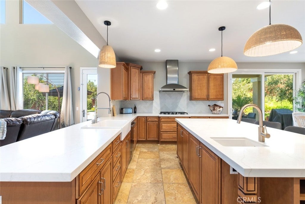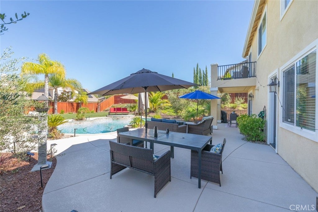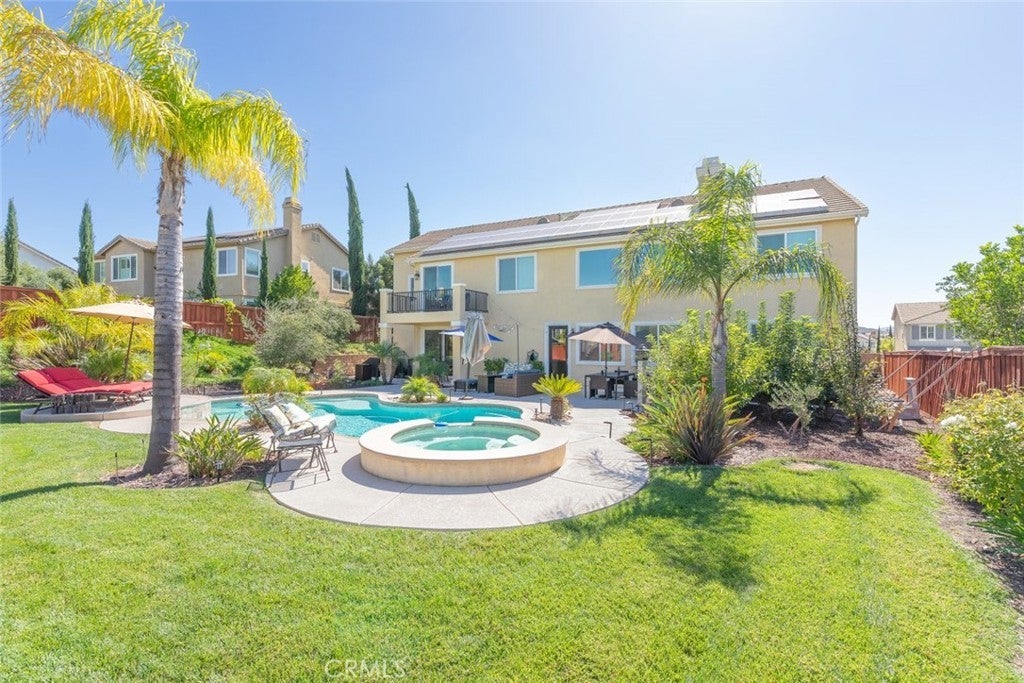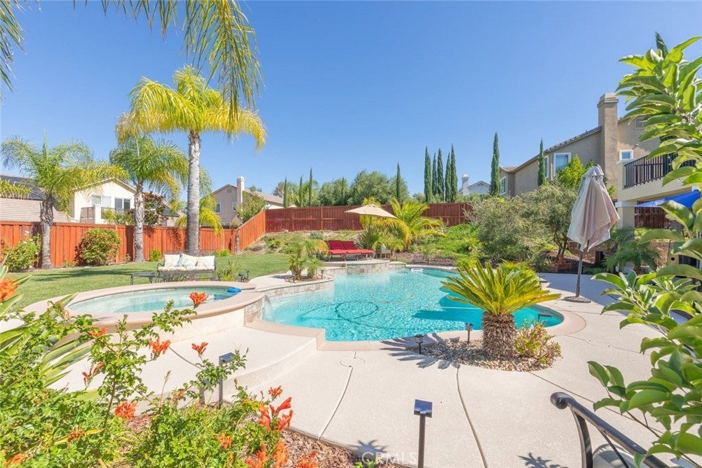 Picture yourself in this stunning two-story home that truly checks every box for comfort, style, and functionality. This home has over $200K in upgrades throughout and offers a spacious 4 car garage. From the moment you step inside, you’re greeted by elegant formal dining and living areas that seamlessly flow into an expansive family room. The heart of the home is the modern kitchen, showcasing brand-new light and bright quartz counters, top-of-the-line appliances, and an oversized pantry designed and custom wine bar to make both everyday living and entertaining effortless. Sitting on a rare quarter-acre lot, the backyard is your personal retreat. Whether you’re hosting family gatherings, watching kids play, letting pets roam, or simply unwinding, you’ll love the sparkling pool and spa with plenty of space left over for entertaining. The thoughtful floor plan includes a private downstairs bedroom with its own full ensuite bathroom—ideal for guests, in-laws, or multi-generational living. Abundant storage options, a spacious laundry room, and multiple closets ensure the home is as practical as it is beautiful. Upstairs, the oversized primary suite offers its own balcony overlooking the pool, a true sanctuary with a completely remodeled spa-like bathroom featuring a state-of-the-art shower, freestanding tub, and sophisticated lighting. Additional bedrooms are generously sized with brand-new carpet, while a Jack-and-Jill suite and a large bonus room provide even more flexibility for family or work-from-home needs. Located just minutes from Temecula’s award-winning Wine Country, this exclusive neighborhood is highly sought after for its charm, privacy, and convenience. This home is more than a place to live—it’s a lifestyle investment offering luxury, space, and lasting value.