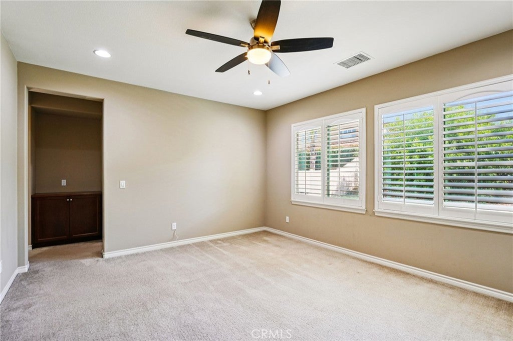 Welcome to Horizon at Morningstar Ranch! Tucked away on a quiet cul-de-sac in one of the area’s most desirable neighborhoods, this beautifully maintained 4-bedroom, 3.5-bath home offers 3,363 sq. ft. of elegant living space filled with natural light and pride of ownership. Designed for flexibility and comfort, the home features two private ensuite bedrooms, including one conveniently located on the main level—ideal for guests or multigenerational living. The open-concept floor plan highlights 9-ft ceilings, expansive windows, and a chef-inspired kitchen with granite counters, dual ovens, stainless steel appliances, and a large center island overlooking the great room. Additional spaces include a downstairs office (optional 5th bedroom) and a spacious upstairs bonus room perfect for a media space or second family area. Throughout the home, plantation shutters, ceiling fans, and cool tile flooring create an inviting and energy-efficient environment. Set on one of the largest lots in the community, the backyard is a blank canvas—ready for your vision of a pool, outdoor kitchen, or serene garden retreat. Located within the award-winning Temecula Valley Unified School District, this home offers exceptional educational opportunities and community appeal. With its thoughtful layout, desirable location, and room to grow, this home truly combines comfort, versatility, and long-term value—a perfect place to call home.