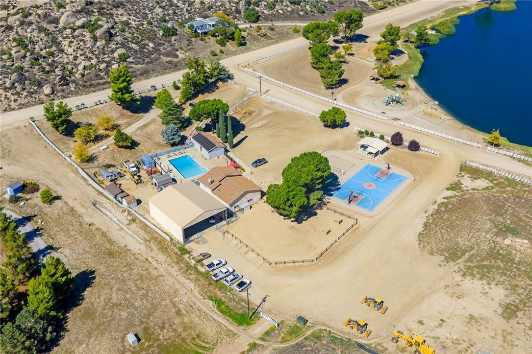Welcome to this charming ranch-style 3-bedroom, 2.5-bath home situated on 2.65 acres of flat, fully fenced land in the desirable gated community of Lake Riverside Estates. This property is a true gem for those seeking space, privacy, and functionality—perfect as a horse property, hobby farm, or peaceful country retreat. Enjoy stunning views of Cahuilla Mountain, a detached 4-car garage (with running water), and ample open land for animals, gardens, or additional structures. The single-story home features a well-designed floor plan with spacious living areas and plenty of natural light. Lake Riverside Estates offers an array of community amenities including a private 55-acre lake, swimming pool area, playground, basketball court, and even a private airstrip—all within a secure, gated environment. Only a short drive from Temecula, this property offers the perfect balance of rural tranquility and convenient access to city amenities. Bring your horses, toys, and vision—this property is ready to make your country living dreams come true!