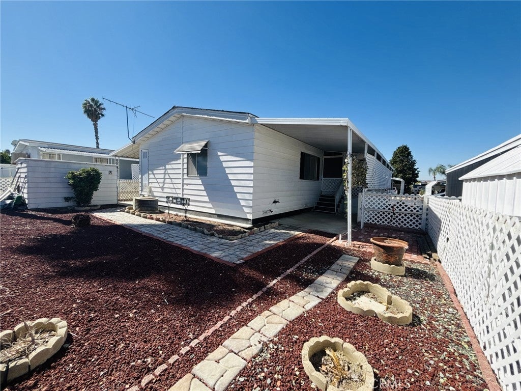 WELCOME TO 55+ COMMUNITY!!! COME VIEW THIS 2BEDROOM 2FULL BATHROOM WITH OPEN FLOOR PLAN... Has a very cozy feel with an awesome chimney in the family room. Kitchen offers open area for entertaining family and friends, holidays are around the corner plenty of room to enjoy company. Property has parking for two cars on the side with Carport Cover. Shed in the backyard is a great size to storage almost anytime. Front entrance has very nice brick steps with black rail to the front main door with a security metal door. As a bonus area there's a workshop or den with a door going to the backyard... The yard has beautiful trees and plenty space in the backyard to add more fruit trees.