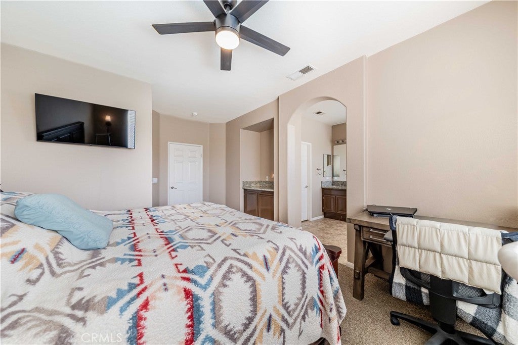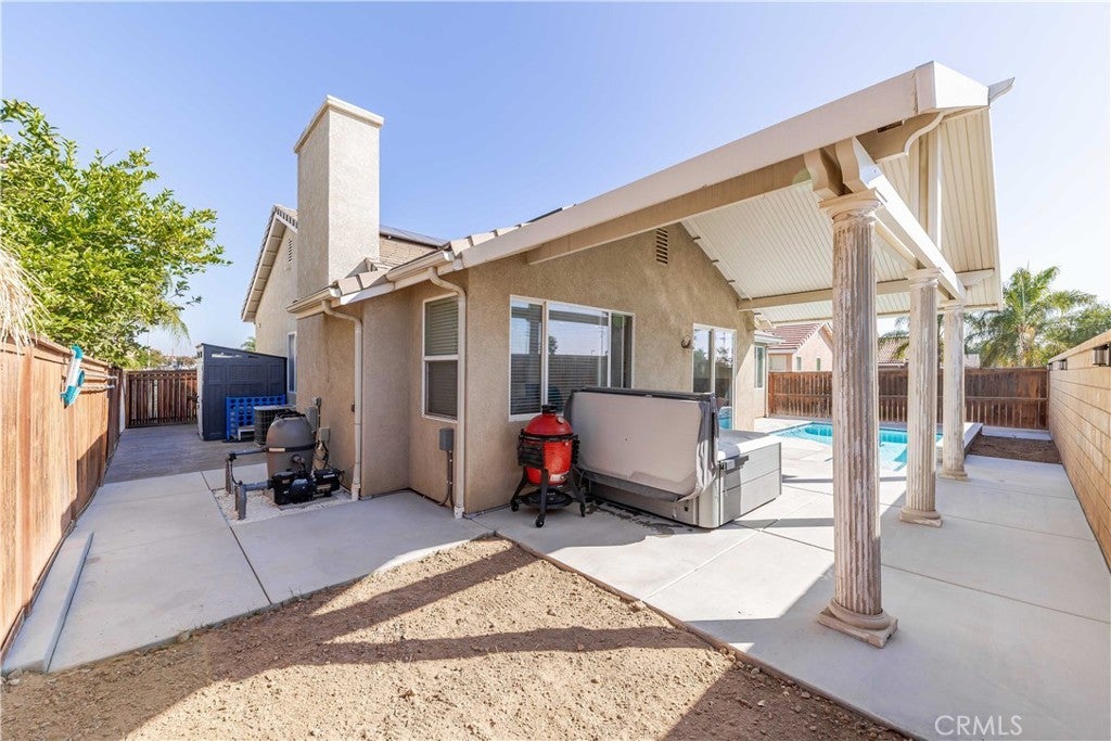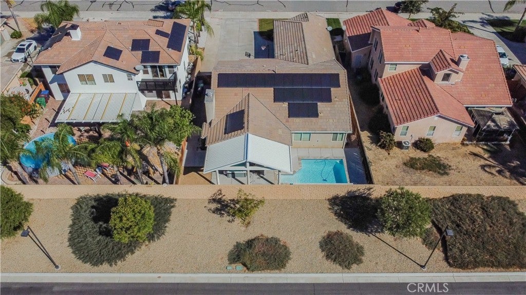 Welcome to 25897 Night Shade Street — a beautifully upgraded single-story home in one of Menifee’s most desirable neighborhoods. Featuring 4 bedrooms, 2 bathrooms, and nearly 2,000 sq ft of living space on a 7,405 sq ft lot, this home blends modern design with everyday comfort. Step inside to discover a bright, open layout with 8–11 ft ceilings, elegant light fixtures, and stylish finishes throughout. The inviting entry flows into a spacious living room with surround sound and a modern ceiling fan, creating the perfect space for entertaining or relaxing. The stunning kitchen features new granite and quartz soapstone countertops, a large island, ship-lap backsplash, drop-in sink, and a brand-new refrigerator—ideal for any home chef. The primary suite offers a peaceful retreat with a walk-in closet, rechargeable light fixtures, and a beautifully finished ensuite bath with granite countertops. Three additional bedrooms include a charming nursery with bamboo hardwood floors and marble window shelving. An updated laundry room, home office, and three-car garage with built-in cabinetry and overhead storage add function and versatility. Step outside to your own backyard oasis featuring a brand-new pool and spa with travertine coping, Alumawood patio cover with lighting, and a gas hookup for outdoor cooking. The extended concrete patio, lush landscaping, and gated RV parking (fits up to 50 ft) make this yard perfect for entertaining or simply enjoying Southern California’s year-round sunshine. Additional highlights include a QuietCool whole-house fan system, 2023 garage doors and water heater, new solar system (25 panels, $190/mo loan), upgraded water main and valves, and a massive driveway that can accommodate 10+ cars. Located in a growing community, Menifee offers affordable luxury with a focus on safety, excellent schools, and abundant recreation. Its central location provides easy access to major cities like Los Angeles and San Diego while offering a vibrant local lifestyle with parks, shopping, and community events just minutes away. This exceptional property is also eligible for an assumable VA loan at 2.65%, offering an incredible opportunity to secure one of Menifee’s finest homes.