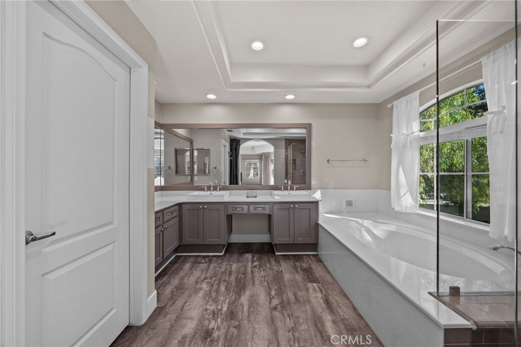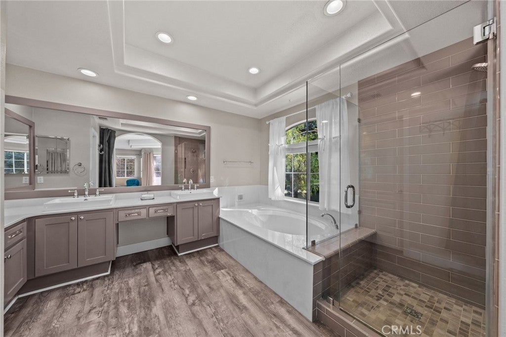 RARE 0.4+ ACRE LOT | LOW HOA | LOW TAX | DOWNSTAIRS BEDROOM | DOWNSTAIRS FULL BATHROOM | PAID-OFF SOLAR | POOL | CORNER LOT | WATER SOFTENER | UPDATED FLOORING | REMODELED BATHROOMS | NEW VEHICLE GARAGE DOORS | You have Arrived! Welcome to this stunning home located in the highly desirable Redhawk Community of Temecula. As you enter, you’re greeted by a formal living room and dining area. The spacious kitchen opens to the family room and features a center island, breakfast nook, and abundant cabinet space. The first floor also includes a bedroom and full bathroom, perfect for guests or multi-generational living. Upstairs, the primary suite is tucked away to the left, offering a private balcony overlooking the backyard, a walk-in closet, and an upgraded ensuite bathroom. Down the hall are three additional bedrooms and a remodeled full bathroom—one bedroom features a large balcony with views of the front yard. Situated on a rare massive, park-like corner lot, the backyard feels like a private retreat with a sparkling pool, mature trees, and cozy fire pit. This home has been thoughtfully updated with hardwood flooring throughout, a water softener system, and paid-off solar. Conveniently located near Pechanga Resort Casino, shopping, dining, and within the award-winning Great Oak High School boundary. This home truly has it all!