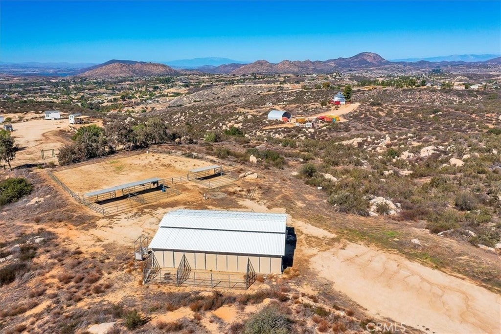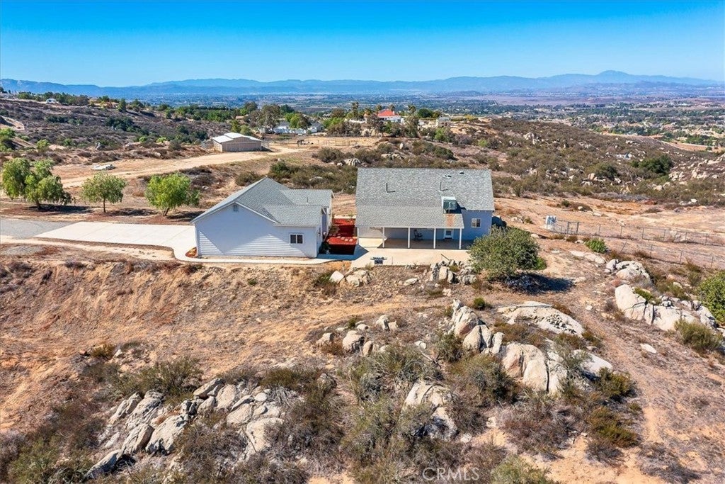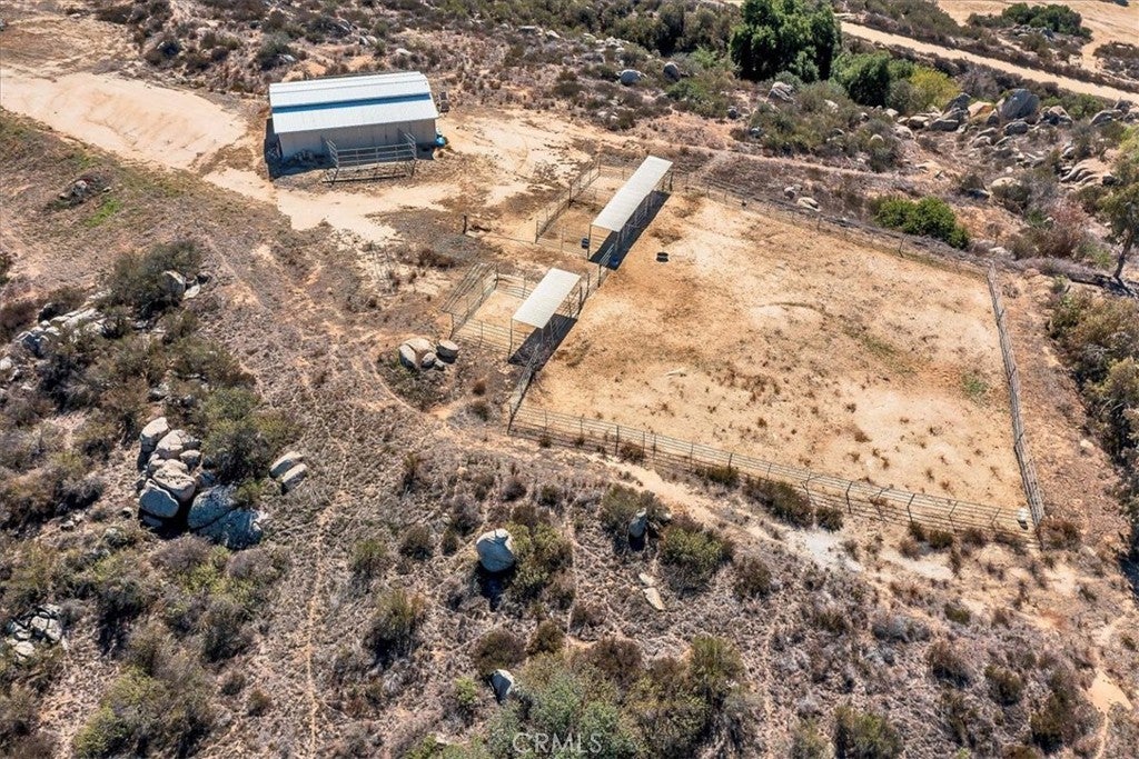A custom home in the Temecula wine country. Property has a Main home, a detached guest house, a large detached garage-workshop, and a barn with corrals all on 10 acres of land! Located above the highly desirable Glenoaks Hills area in the heart of the Temecula wine country. Ten acres with 360 degree views of Lake Skinner and the wine country and city lights! Enter the main home into a spacious living room with a bank of windows to take in the fantastic views. Your gaze will be drawn to the spiral staircase leading to the upstairs huge 4th bedroom/office. The sunny and bright kitchen with custom cabinetry and granite counters, and large island with seating, and a pantry offers plenty of storage space. The outdoor covered patio welcomes you to relax and enjoy the view and watch the hot air balloons glide overhead. The private Guest house, Casita with its separate entrance offers an open concept floorplan with kitchenette and full bath. The combined living area for the home and casita totals over 2500 sqft! A detached garage has been drywalled and the workshop floor sealed with epoxy, perfect for a pool table or hobby game room, leaving the remaining bay space available for parking, and access to the attached laundry room. Additionally, there is an office room with a private entrance attached to the garage. The horse facilities include a 36X48 barn with in and out stalls with welded wire panels, with large open span area for tractor parking, tack or hay storage. There are additional turnouts with covered corrals. The twenty solar panels are seller owned. There are two permitted wells that are not in use as property is connected to municipal water source. Water bond has been paid in full. Low taxes! Property split potential.