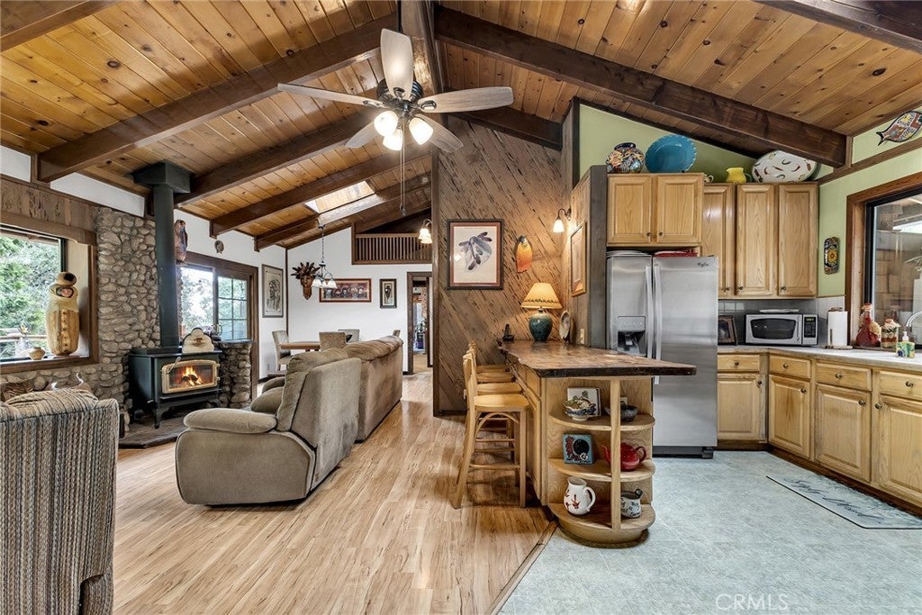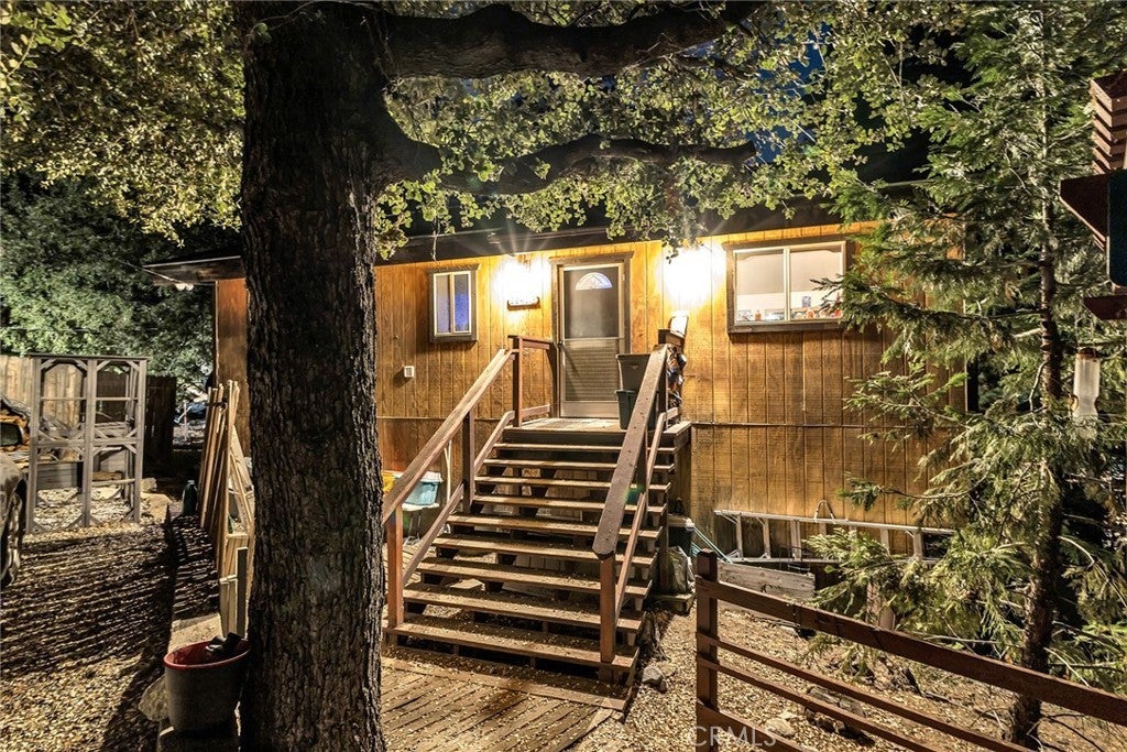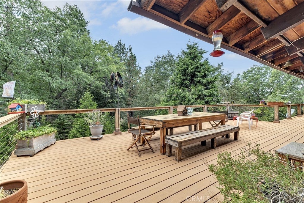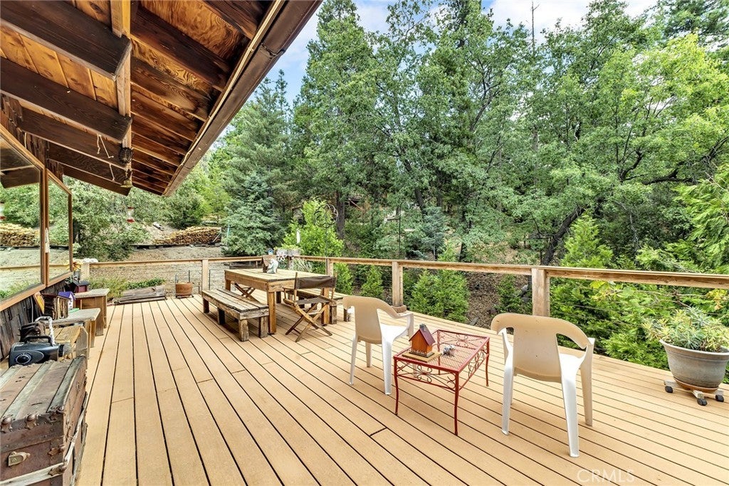 Three homes on three private acres, just five scenic miles north of Idyllwild. Zoned W-2-40, this versatile property offers a rare combination of residential comfort, income potential, and flexible rural use. The setting is quiet and private, surrounded by tall pines and mountain views, with room for horses, gardens, and creative projects. The main residence features vaulted wood-beam ceilings, open living and dining areas, and three bedrooms including two ensuite units. A large quilting room offers abundant light and storage, easily adaptable as an art studio, office, or additional bedroom. The primary suite includes a walk-in closet and a spacious bath with a custom oval window. The lower ensuite bedroom is large enough for a sitting area, gym, or guest suite. Outdoor living spaces include a screened and covered deck for morning coffee and a wraparound deck ideal for sunset views. A 500-square-foot detached workshop provides ample space for tools or hobbies. Above the two-car garage, a bright one-bedroom apartment includes vaulted ceilings, full kitchen, and laundry. The two-bedroom Garden House offers its own fenced yard and forest views. Both guest units are currently rented, generating steady income while the main home remains owner-occupied. The property, known as Eagles Nest Ranch, captures the true mountain lifestyle—peaceful, private, and practical. Whether you envision a family compound, small equestrian retreat, or creative live-work environment, this three-acre parcel provides rare versatility and endless potential under W-2 zoning. Trails, wildlife, and open space surround you, just minutes from the heart of Idyllwild.