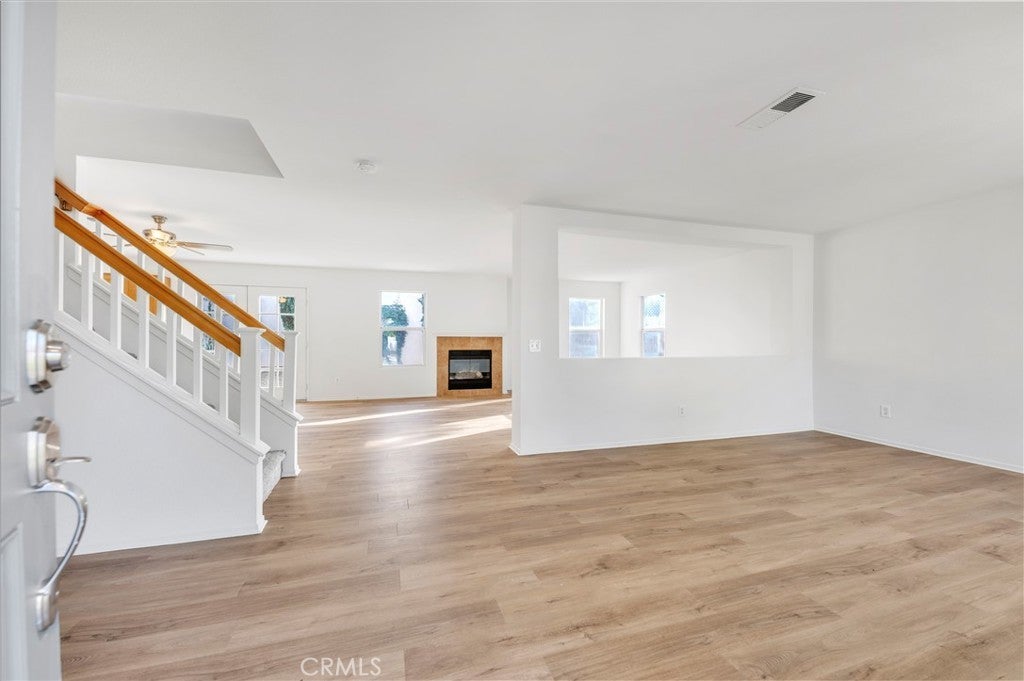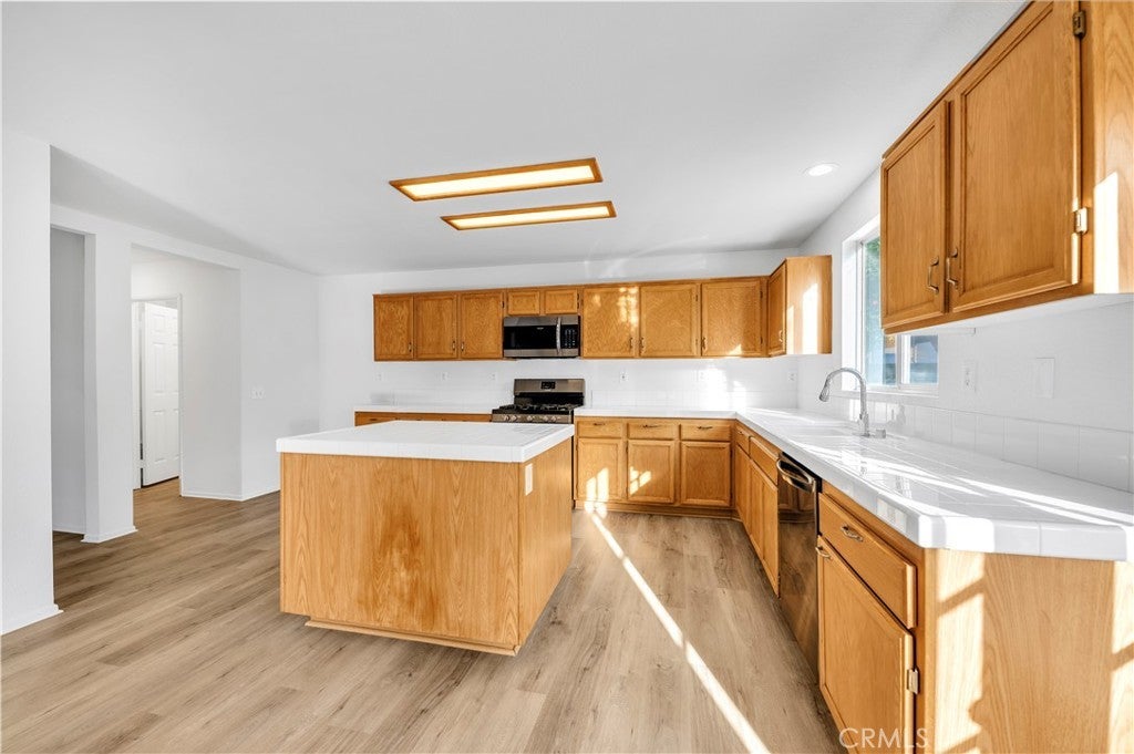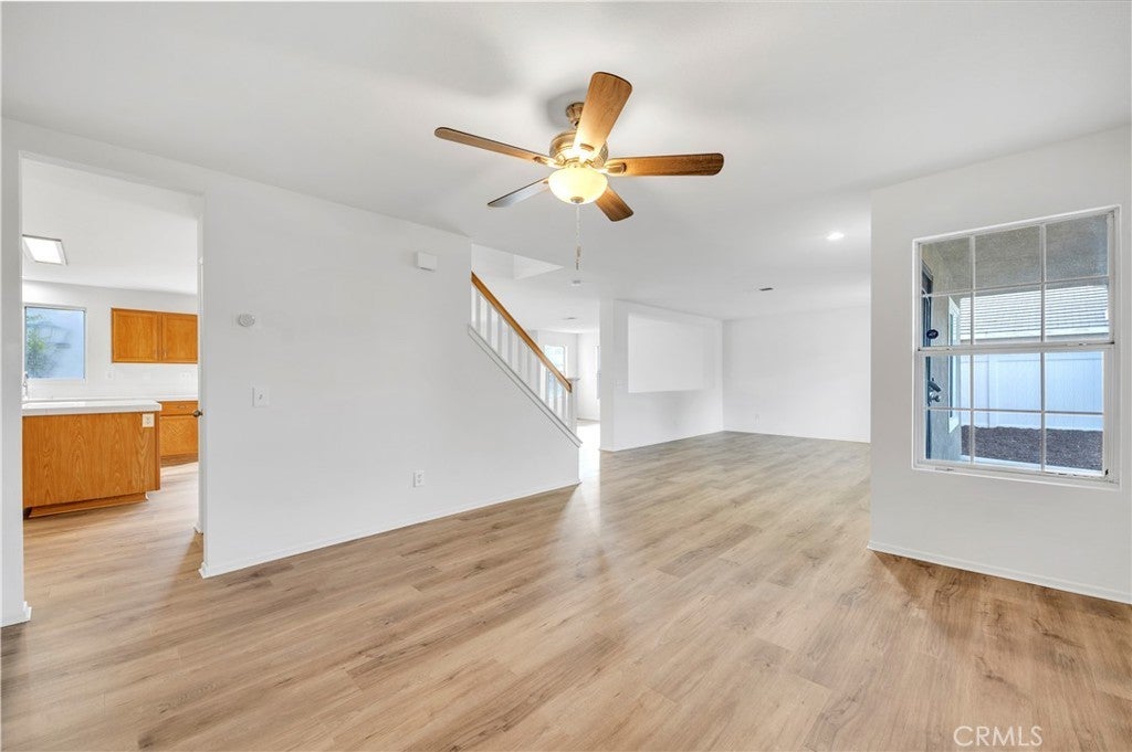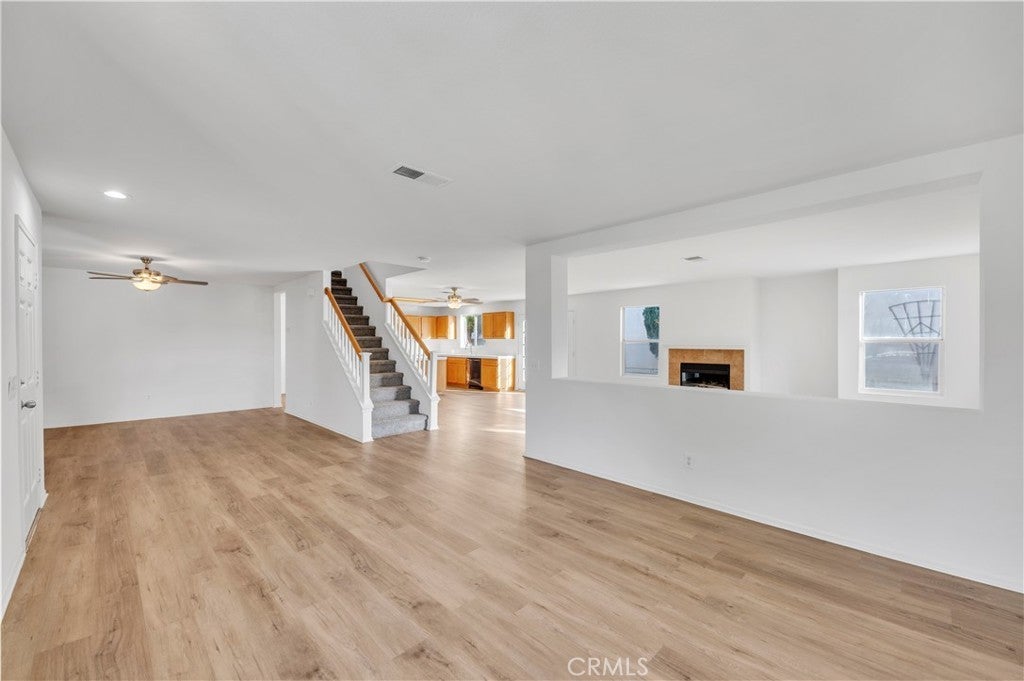 Step inside and fall in love with this light-filled, newly updated two-story home in the heart of West Hemet! Offering 3 bedrooms plus a spacious loft and 2.5 baths, this move-in-ready beauty features brand new LVP flooring throughout the main level, new carpet in all bedrooms, and fresh paint inside and out. The open-concept layout includes a large kitchen with ample cabinetry, a center island, and direct access to the backyard—perfect for entertaining. The family room features a cozy fireplace and tons of natural light. Upstairs, you’ll find a generous loft ideal for a game room, home office, or second living space. The primary suite offers dual sinks, a soaking tub, separate shower, and walk-in closet. Enjoy the newly landscaped front yard and a large, pool-sized backyard ready for your creative touch. Conveniently located near parks, schools, and shopping, with low taxes and no HOA—this Hemet gem has it all!