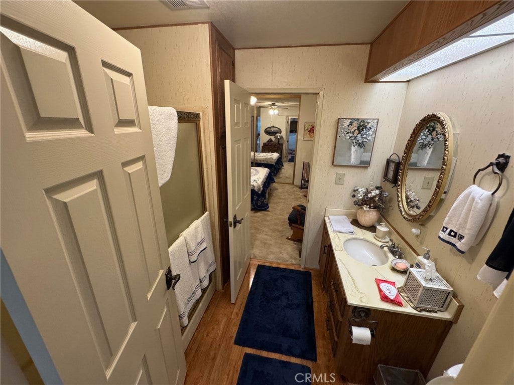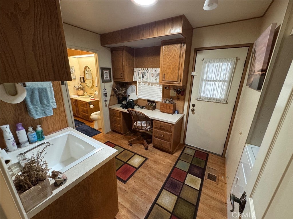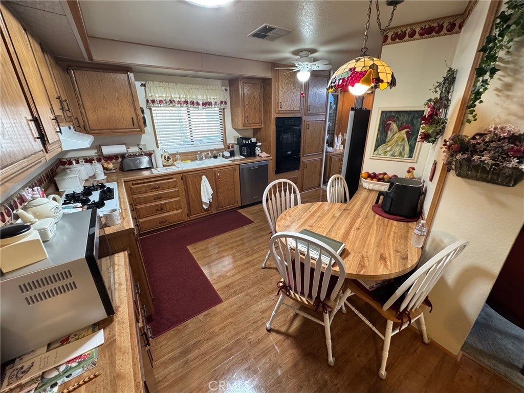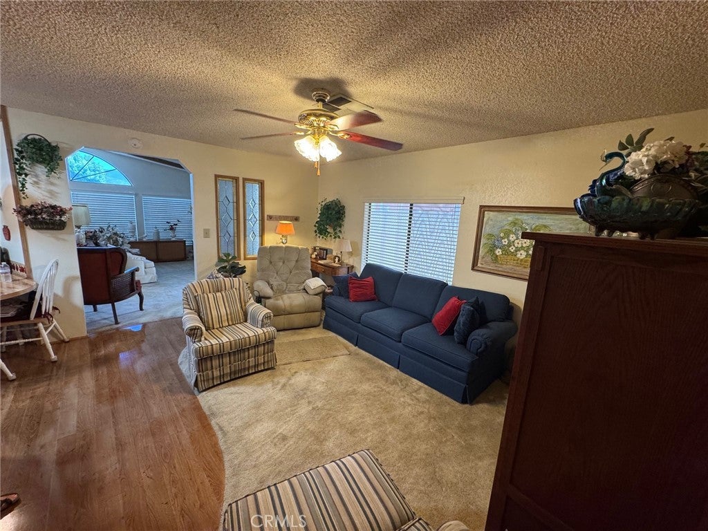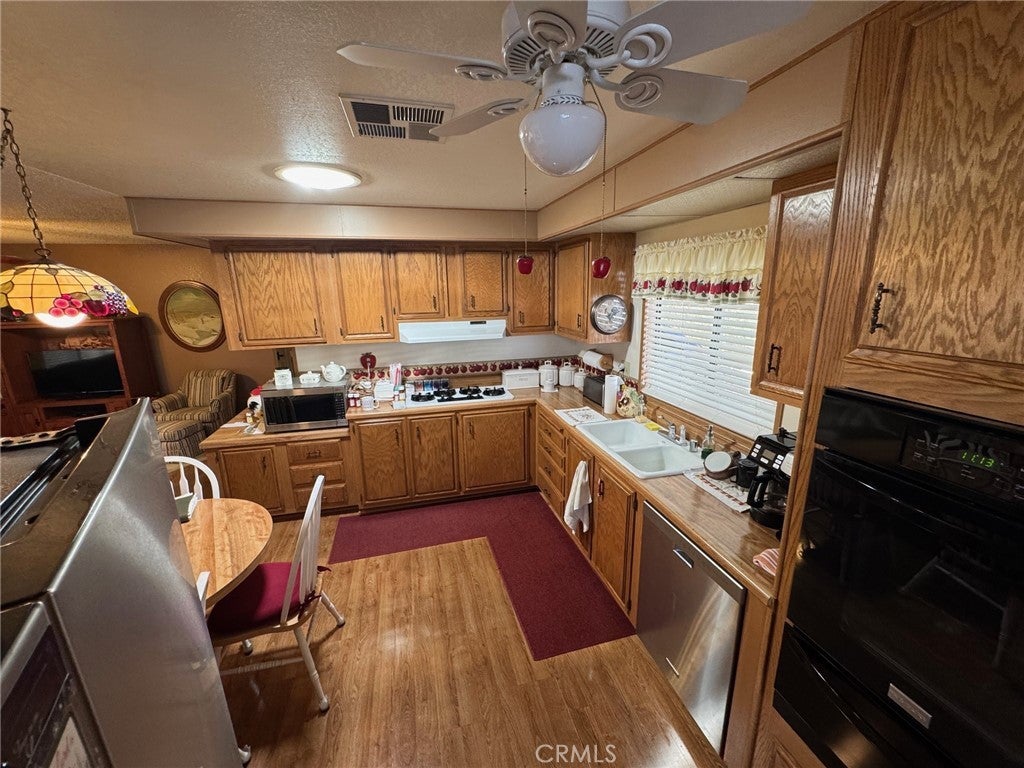 Beautiful 2-Bedroom Home (Space #58) in Mountain View Park (55+ Community – East Hemet). This charming 1,440 sq. ft. home is located in one of East Hemet’s most desirable 55+ communities, Mountain View Park. Enjoy stunning open views from the living room with scenic mountain backdrops. The spacious kitchen includes a cozy breakfast area, cooktop and hood, KitchenAid dishwasher, double sink, pull-out storage, and attractive laminate flooring. The ceiling features decorative wood beams that add warmth and character. Additional highlights include solar shades on the east side, ceiling fans in every room, and a dedicated laundry room with a wash sink and convenient built-in desk area. Outside, the yard is fully fenced and beautifully landscaped with a plum tree and inviting patio—perfect for relaxing or entertaining. This one is a true charmer—move-in ready and full of warmth!