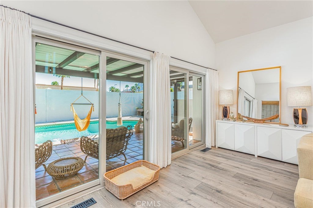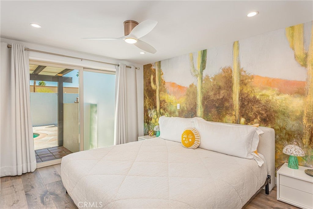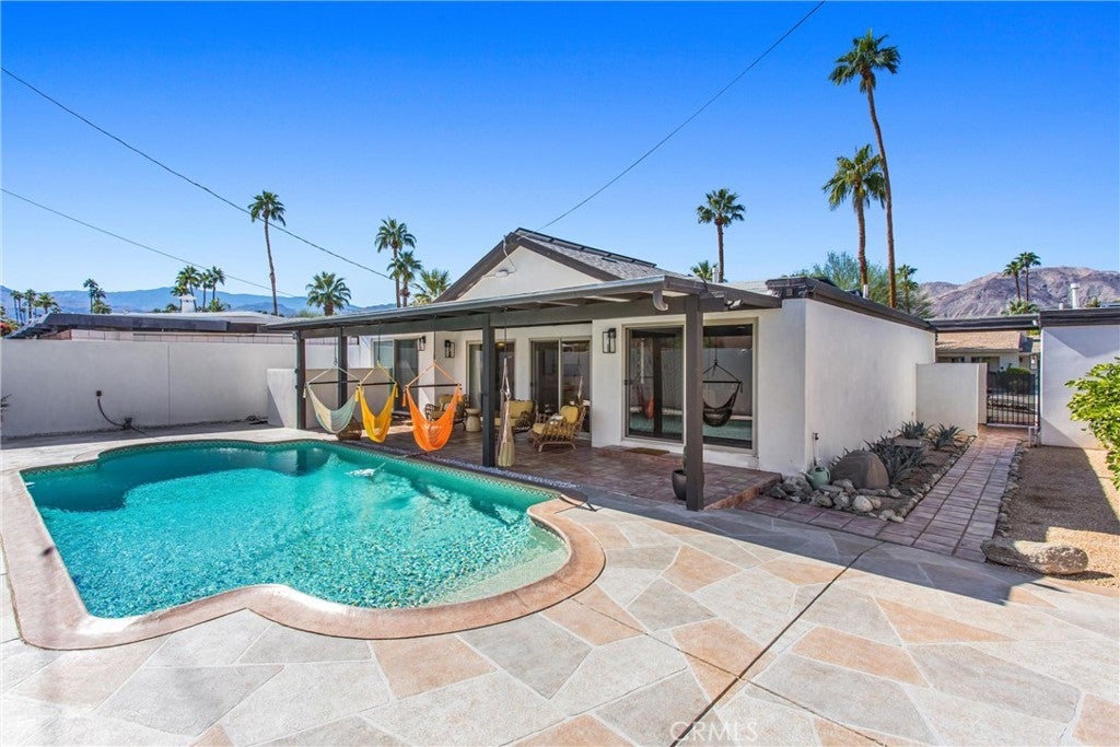 Modern Desert Home- Stylish, Smart & Steps from El Paseo. Welcome to your fully remodeled modern oasis in the heart of South Palm Desert, just blocks from the shops and dining of El Paseo. This thoughtfully updated 3 bedroom and 2 bath home blends 70's retro charm, offering a bright, open layout that flows seamlessly into a vaulted living area with a striking fireplace and custom dry bar. The designer kitchen features premium appliances and sleek finishes, while the bathrooms showcase terrazzo tile. Step outside to your private backyard retreat, complete with a pebble-tech pool, BBQ, pergola, fire pit, and fresh desert landscaping. Additional highlights include paid solar, smart-home upgrades, and curated designer touches throughout. Whether you're seeking a weekend getaway or an income property, this turnkey gem delivers style, comfort, and location in perfect balance.