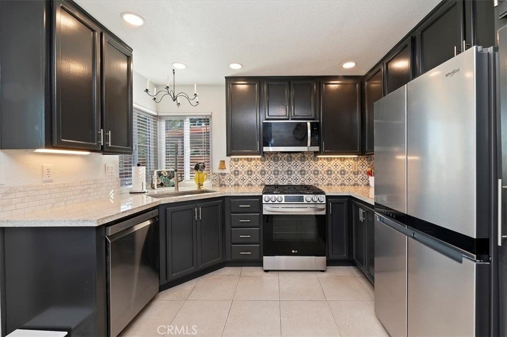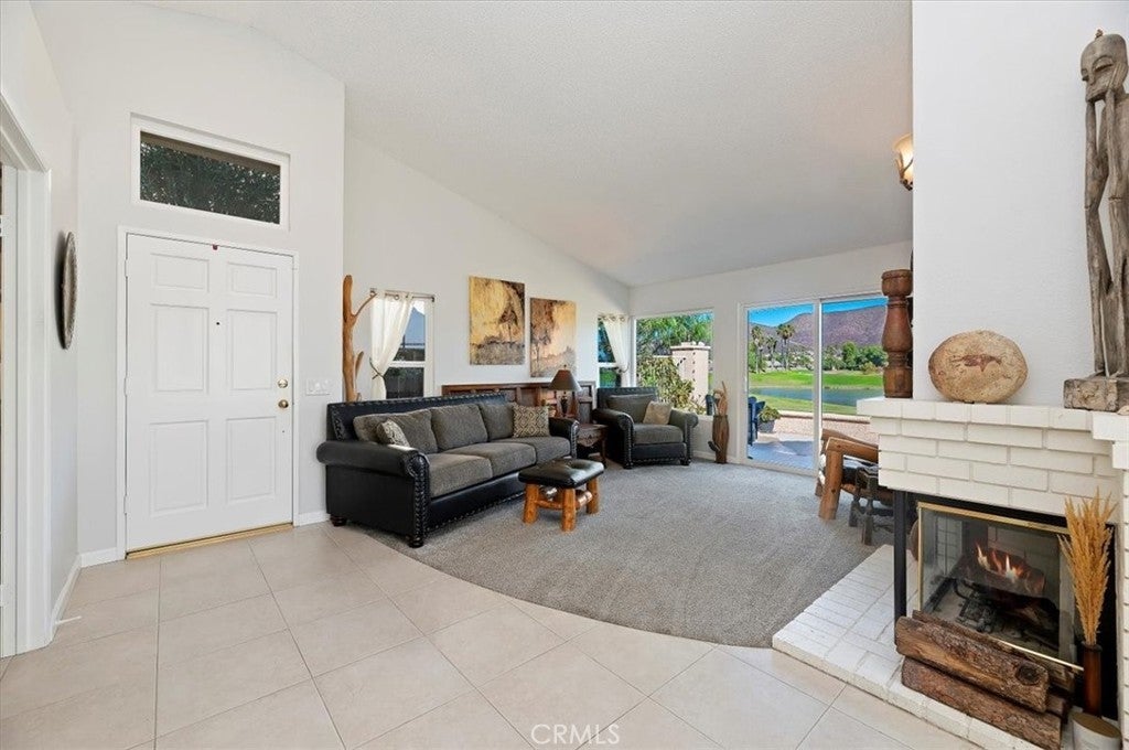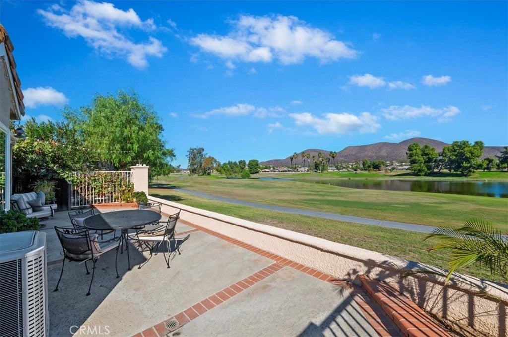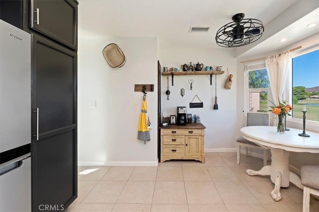 VIEWS OF THE GOLF COURSE, VIEWS OF THE LAKE,VIEWS OF THE MOUNTAINS! This fantastic home was Designer remodeled in 2024. It has NEW windows, interior paint, exterior paint, lighting, toilets, baseboards, rocker switches, blinds, and elevated washer and dryer, upper end LG stainless steel appliances. Also new granite counters , stainless steel large sink and faucet, Back splash in deco tiles, cabinets painted and glazed, new hinges and handles, pullouts and breakfast nook with a killer view. the is a new filtered water system, garbage disposal and ceiling fans, under cabinet lighting. TV/office room (3rd bedroom) has a built-in desk(closet is removed) and tv mount. Large primary suite with dual vanity, large shower and slider to front patio, as well as a walk in closet and ceiling fan. There is tile throughout the house except bedrooms with carpet. Primary living areas have cathedral ceilings. Water heater and AC replaced in the past 3-4 year. The tile roof was redone with new 2 ply paper in 2024. The 2 car garage has built in shelves, and attic storage. Astro turf front yard, paver walks and accents. The property has easy to maintain landscaping and plants. All of this PLUS it is located the Palmilla 55+ community, with a community pool/spa, as well as you have access to plus the nearby Beach & Swim Club featuring a sandy, resort-style pool with private cabanas, BBQs, and even a waterslide. Menifee Lakes is filled with free concerts in the park, breathtaking sunsets over the water and annual celebrations and parades. Golfers will love the Menifee Lakes Golf Course, the valley’s only 36-hole golf facility with two championship courses. Don't miss out on this turnkey opportunity!