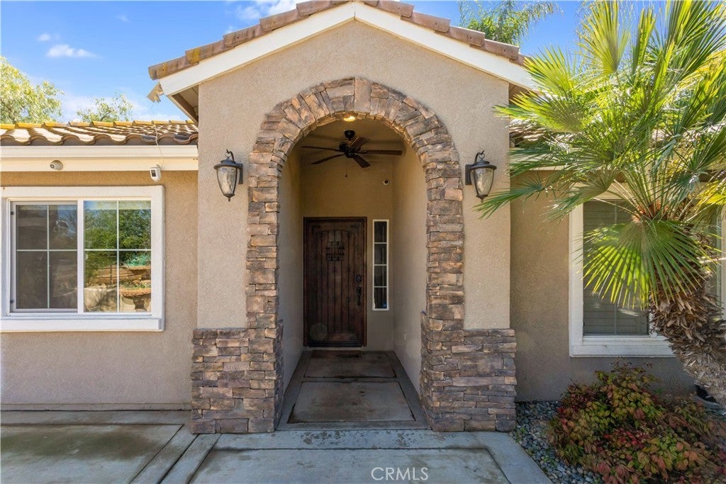 WELCOME HOME to your own rarely available "PRIVATE SERENITY' - GATED ENTRY- 5 Bedrooms / 3 Full Baths, Single Story, Menifee Home. Interior features upgrades throughout including; Open floorplan with Living / Dining Area Great room with gas fireplace, high ceilings, built-in book cases. Custom designed decorative travertine tiled flooring, recessed lighting. Kitchen includes all stainless steel appliances - 5 burner gas stove top/oven - Built-in Microwave - Refrigerator (included) - Dishwasher - Disposal. Amazing stone countertops & accent tiled backsplash walls with cooking prep island & breakfast bar. Lots of cabinets and dine in area. Primary bedroom suite & bath with walk-in custom designed closet, dual sink vanity, walk-in dual head shower & commode. Four additional large bedrooms with LVP flooring, window blinds and mirrored wardrobed closet doors. Two additional baths with tub in shower. Additional features include; Custom front door entry, newer Luxury Vinyl Plank (LVP) Wood Flooring, Tankless water heater, crown molding, 4" baseboards, Lighted Ceiling fans, high ceilings, built-in cabinets/shelving, indoor laundry, (Washer/Dryer included), Plantation Shutters/Window Blinds & Screens. Large private exterior screened in "Arizona Room" with fireplace, lighted ceiling fans & access to the side/back yard. Garage with tandem room for up to four vehicles. Private gated entry circular driveway, possible RV parking and MORE. Possible horse property use (unimproved), Close to I-215 freeway access, shopping hospitals, schools, restaurants and more. Rent includes Lawn Service, Trash, Well Water, Monthly Pest/Rodent Control Service. If you're looking for extra room & privacy, THIS IS IT!