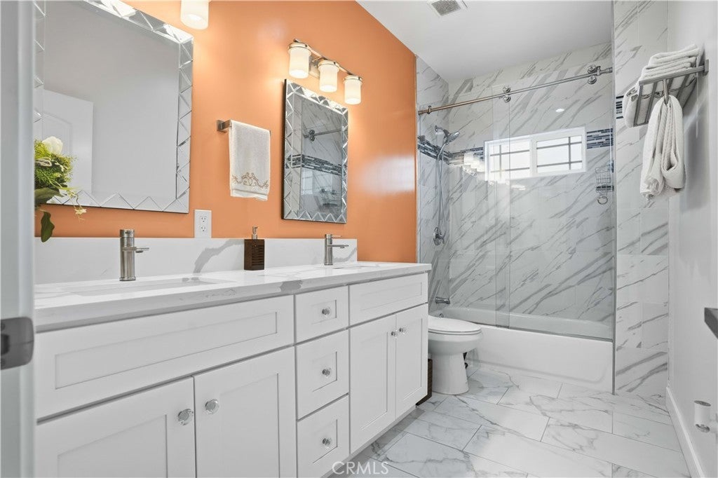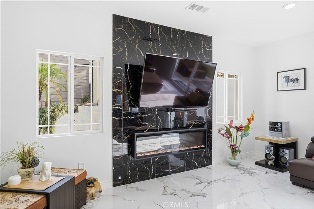 Welcome to 29875 Smugglers Point in the highly sought-after Canyon Lake community. This beautifully designed home offers modern comfort and lake-living luxury. Built in 2019 (1 owner home) this residence features approximately 2,700 square feet of thoughtfully crafted space with four bedrooms and three and a half bathrooms. The open-concept layout seamlessly connects the living, dining, and kitchen areas, creating an inviting atmosphere perfect for both everyday living and entertaining. The kitchen is equipped with contemporary finishes, stainless steel Fridge, oven and dishwasher, waterfall quartz island counter, Calacatta floors throughout, with ample storage and dramatic floor to ceiling black marble fireplace wall with electric insert. The spacious double primary suites includes luxurious ensuite bathrooms and generous walk-in closets, providing a relaxing private retreat. In addition, complete home fire sprinklers for additional safety. In addition to the main home, there is a private studio apartment (ADU- Gen Suite) with its own entrance, Kitchenette, full bath, loft and desk area ideal for guests, extended family, or potential rental income. A two-car garage offers convenience and additional storage. Outdoor living is just as impressive, with a patio and yard designed for relaxing evenings or weekend barbecues. Located within minutes of Canyon Lake’s private beaches, parks, and recreational amenities, this property perfectly blends modern style with the best of lake community living.