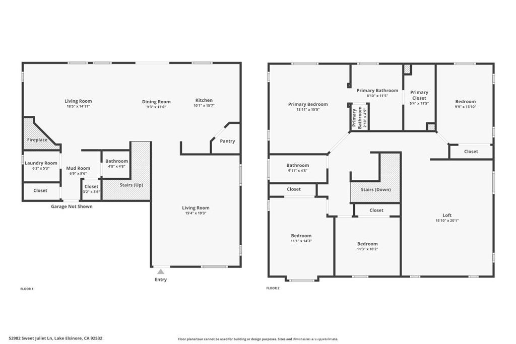 Welcome to 52982 Sweet Juliet Lane, a spacious and well located 4-bedroom, 2.5-bath home offering 2,643 sq ft of living space in the sought after Rosetta Canyon community of Lake Elsinore. This two story single family home sits on a generous 7,405 sq ft lot and features an inviting layout ideal for both everyday living and entertaining. Downstairs, the home offers an open-concept floor plan with dedicated living and dining areas, as well as a large kitchen with an oversized center island, ample counter space, and room for additional seating or a breakfast nook. A separate family room with a cozy fireplace creates the perfect space to relax or entertain, and there’s a convenient half bath on the main level for guests. Upstairs, you'll find all four bedrooms along with a spacious loft perfect for a home office, media room, or play area. The primary suite features abundant natural light, a large walk-in closet, and a private en-suite bath. Three additional bedrooms share a full hallway bathroom and offer flexibility for growing households or multigenerational living. Step outside to a large backyard with a covered patio and panoramic views of the nearby mountains. The backyard is a blank canvas oasis offering privacy, hillside views, and incredible potential. Whether you envision a pool, garden, or outdoor kitchen, there’s ample room to turn this space into your private retreat. Rosetta Canyon is known for its welcoming neighborhood feel, 23 acre community sports park, and convenient access to shopping, dining, and commuter routes. The nearby park includes tennis courts, basketball courts, baseball and soccer fields, a dog park, playgrounds, and shaded picnic areas. Earl Warren Elementary School is just a short walk away, making this home especially appealing for families. Located just minutes from Highway 74 and the I-15 freeway, this home offers quick access to the Temecula Valley, Menifee, and surrounding areas. Enjoy the scenic beauty of Lake Elsinore, nearby hiking trails, and the convenience of modern suburban living in one of the area’s most popular communities.