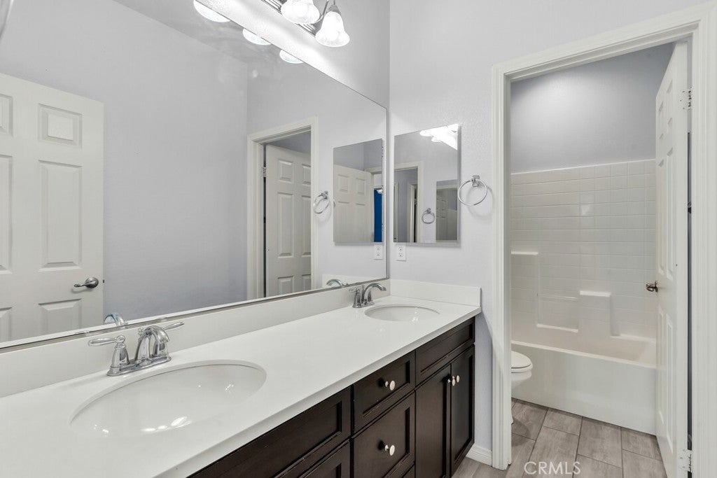 Welcome to one of the most affordable large family homes in Wildomar! This 4-bedroom, 3-bathroom home built in 2017, offers over 2,800 square feet of modern living space. Thoughtfully designed with style and comfort in mind, this home features energy-saving solar, plantation shutters and designer flooring throughout. The open-concept floor plan flows seamlessly from the spacious living room into a large kitchen complete with granite countertops, a large center island, stainless steel appliances, and upgraded cabinetry — perfect for entertaining or family gatherings. Upstairs, retreat to a primary suite featuring an ensuite bath with dual sinks, a soaking tub, and an extra large walk-in shower. Three additional spacious bedrooms, a loft and a full bath upstairs provide plenty of room for family, guests, or a home office. The home also includes an attached two-car garage with tankless water heater and a convenient upstairs laundry room. Located in a desirable Wildomar neighborhood close to parks, schools, shopping, and freeway access, this home blends contemporary style with everyday convenience. Professional photos will be posted 10/24.