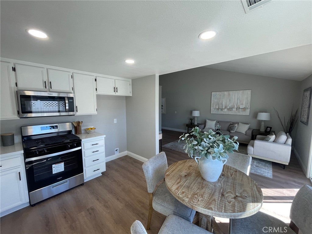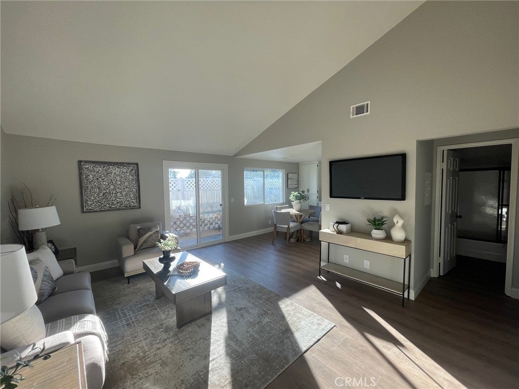 Turnkey Temecula Condo!Step into this beautifully updated 2-bedroom, 2-bath condo with convenient access to a 2-car garage, ideally located near the 15 Freeway and close to shopping and dining. This stylish, move-in ready home features new luxury vinyl plank flooring, upgraded baseboards, fresh interior paint, and vaulted ceilings that create an airy, elegant feel. The bright kitchen showcases white cabinetry, new stainless steel appliances, and modern fixtures that make cooking a pleasure.Both bathrooms have been tastefully remodeled with new shower doors and chic vanity cabinets. Enjoy energy-efficient dual-pane windows in the bedrooms and kitchen, plus a new sliding door in the living area that opens to your private patio. The primary suite impresses with vaulted ceilings, a new sliding door leading to a quaint outdoor sitting area, and an updated en-suite bath for a touch of everyday luxury. Step outback to a fully fenced patio with access to a park-like grassy area—perfect for relaxing or entertaining. With low taxes and a prime Temecula location, this turnkey home combines comfort, style, and convenience in one perfect package.