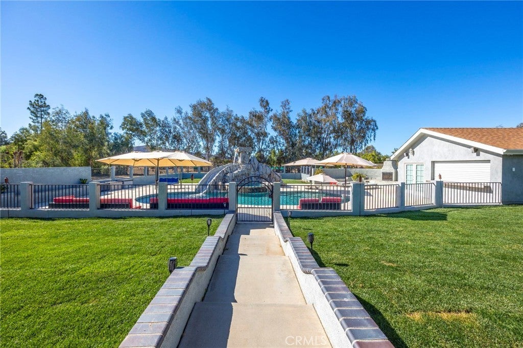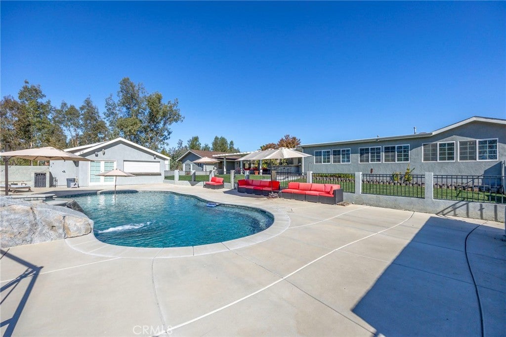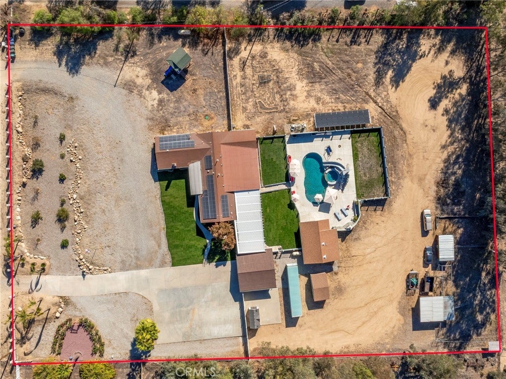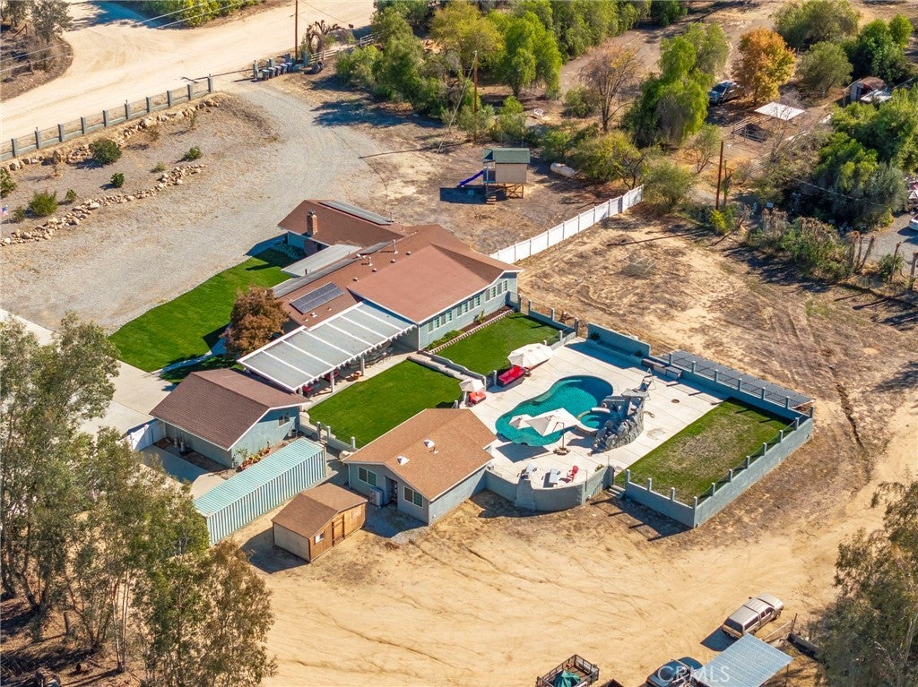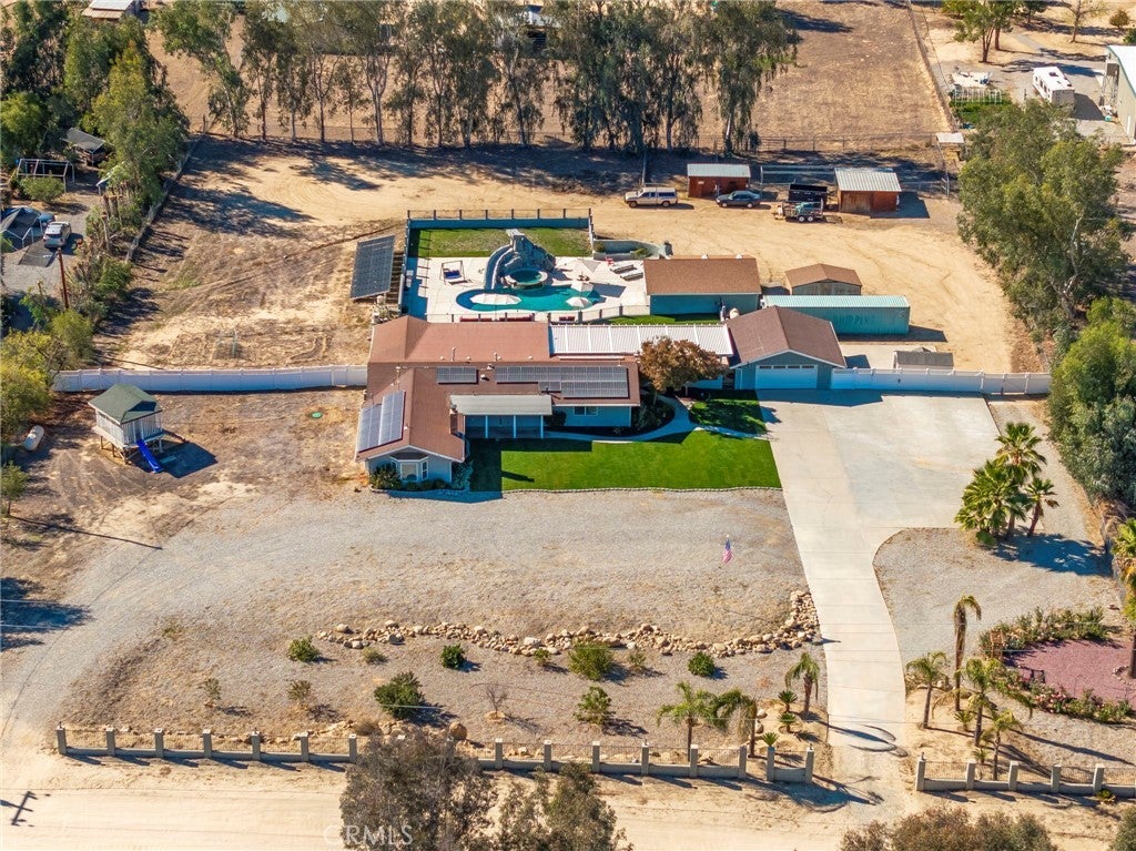 Private Ranch Estate on Over Two Acres Zoned A-1. Experience the best of country living with modern convenience at 30245 Santa Fe Street. This spacious single-story home sits on more than two acres of usable land offering wide-open space, privacy, and multiple improvements ideal for entertaining, multi-generation living, or hobby use. Interior Features: Bright and inviting floor plan with expansive living and dining areas, large kitchen with generous cabinet space and breakfast bar, walk-in pantry, 6 bedrooms and 3 bathrooms to accommodate family or guests, durable tile and laminated flooring throughout for easy maintenance, inside laundry, Energy-efficient home equipped with solar system for the residence. Outdoor Living: Sparkling in-ground pool with LED lights with a separate solar heating system for year-round enjoyment, spa, surround sound in pool area, detached pool house with a bathroom — perfect for guests, home office, or studio use. An outdoor shower. Expansive covered patio with built-in-bbq, ideal for outdoor dining and relaxing with a fire pit. Additional seating area near the pool with an outdoor fireplace. Multiple RV hookups. Level 2 EV charger in the garage. Multiple storage units and outbuildings for tools, hobbies. Horse shed/corral. Wide driveway and gated access with plenty of room for RVs, boats, and trailers, fully fenced property with usable land — great for animals, gardens, or expansion. Multiple fruit trees and a beautiful rose garden. Additional Highlights: Two solar systems (home + pool) to help lower energy cost Located in a quiet area of Hemet with easy access to shopping, schools, and major roads. Summary: Single-story | Dual solar systems | Pool & Spa | Pool house w/bathroom | Multiple storage units | 2+ acres | RV parking | Horse Facilities