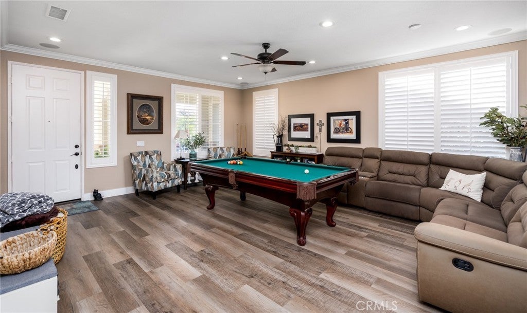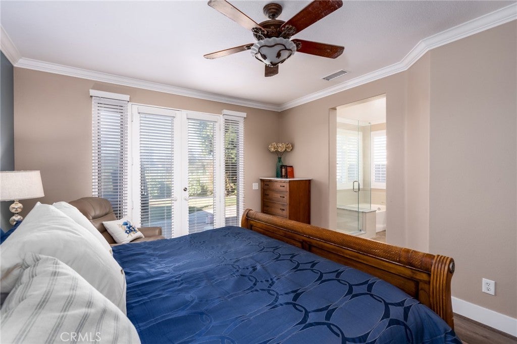 • Interior FeaturesCeiling Fan(s), Crown Molding, Quartz Counters, Main Level Primary, Walk-In Closet(s)