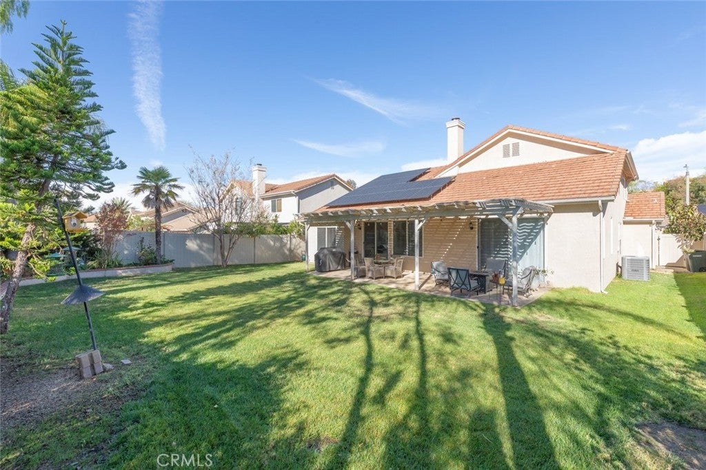 Beautifully Maintained Home with Paid-Off Solar in a Quiet Cul-de-Sac Welcome to this highly desired family home located on a peaceful cul-de-sac just minutes from Temecula’s world-renowned Wine Country. This beautifully maintained residence features fully paid-off solar, a newer HVAC system, updated appliances, and stylish upgrades throughout, including a modernized kitchen with Quartz counters, laminate flooring downstairs and a remodeled primary suite shower. This sought-after floor plan offers a main-floor primary suite for added comfort and convenience, along with three spacious bedrooms upstairs—perfect for family, guests, or a home office. The inviting backyard features a generous patio and full cover, providing the ideal space for entertaining, barbecues, or simply relaxing outdoors. Families will also appreciate being part of the award-winning Temecula Valley Unified School District, known for its top-rated schools, strong community involvement, and commitment to academic excellence. Situated close to shopping, dining, parks, and the stunning vineyards of Temecula, this home combines the best of location, lifestyle, and lasting value.