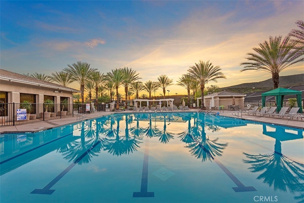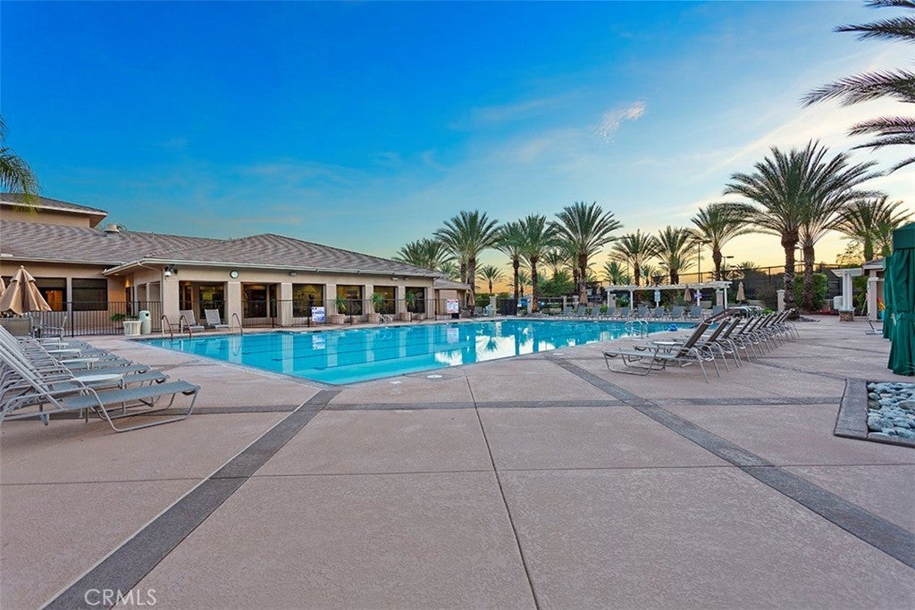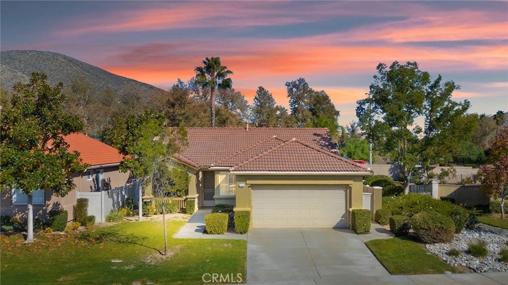 Peaceful evenings in the patio and all the amenities you could want! This charming single story home is located in The Oasis 55+ community featuring a clubhouse with more than 90 clubs and activities! The open concept home offers a spacious ensuite primary bedroom with a walk in closet and a guest bedroom and bathroom plus lots of storage space and tons of natural light. The large kitchen has a pantry and kitchen island plus a dining room area which opens to the spacious living room. The backyard is clean and perfect to enjoy your evenings looking at the hills. There are no neighbors behind and the block wall provides extra privacy will the iron fencing allows more space for your plants and greenery. There is a dog run or side patio with artificial turf and an oversized garage with built in cabinets and a water softener system. Your perfect forever home is here!