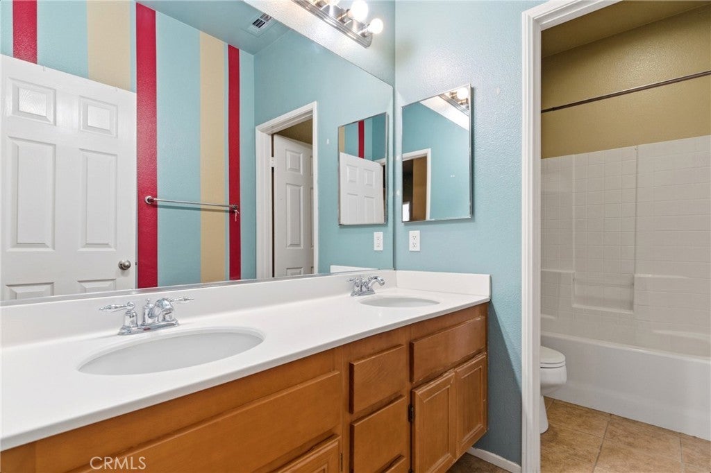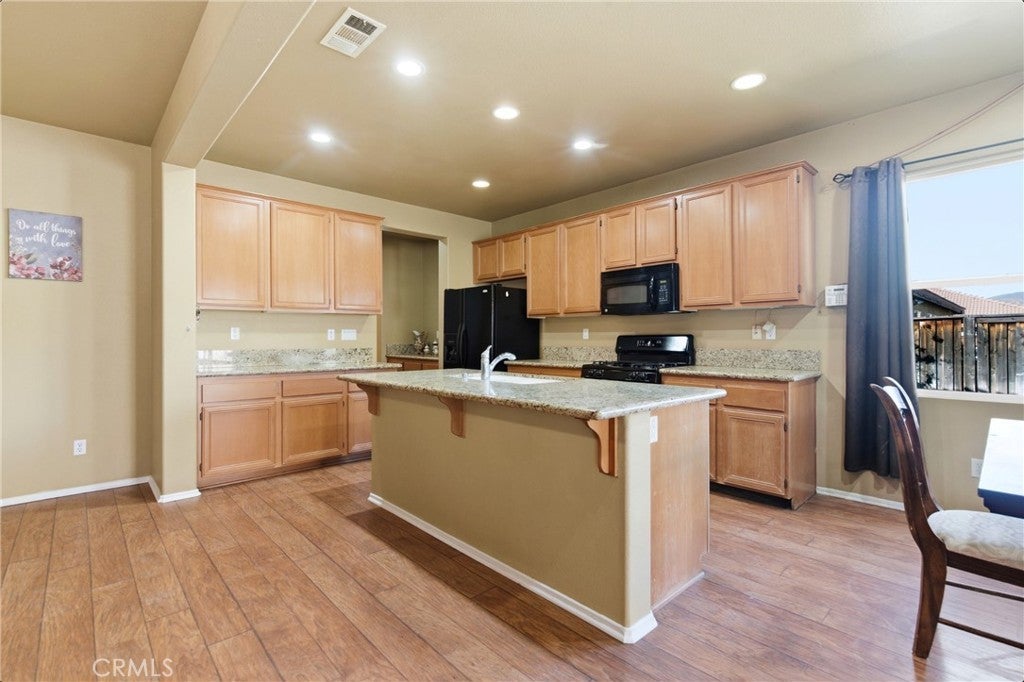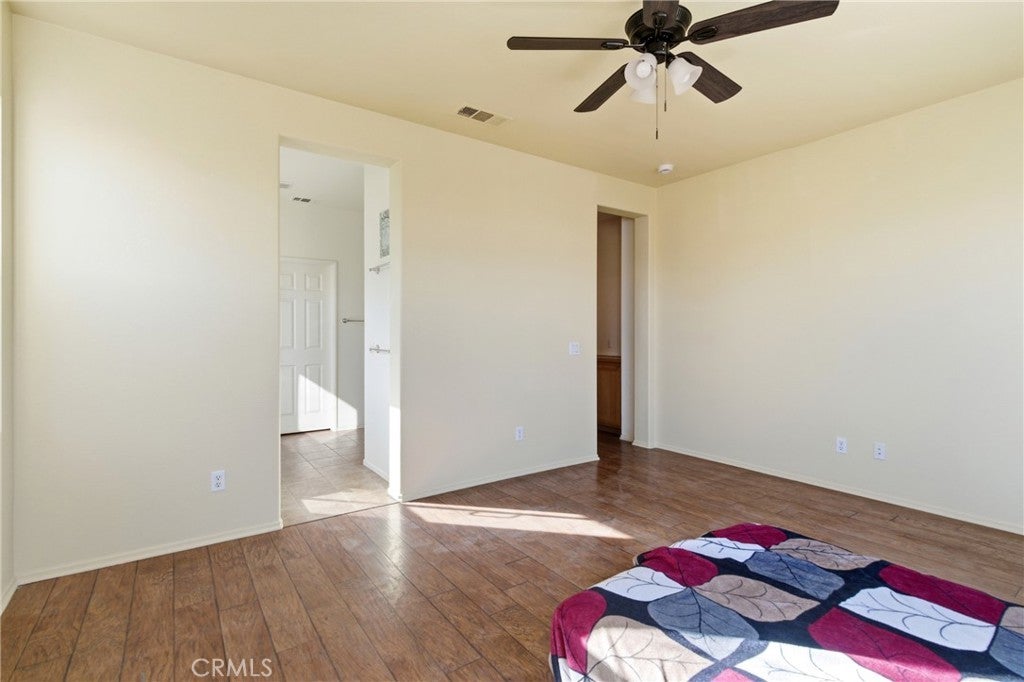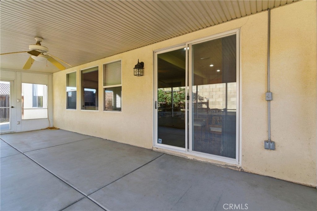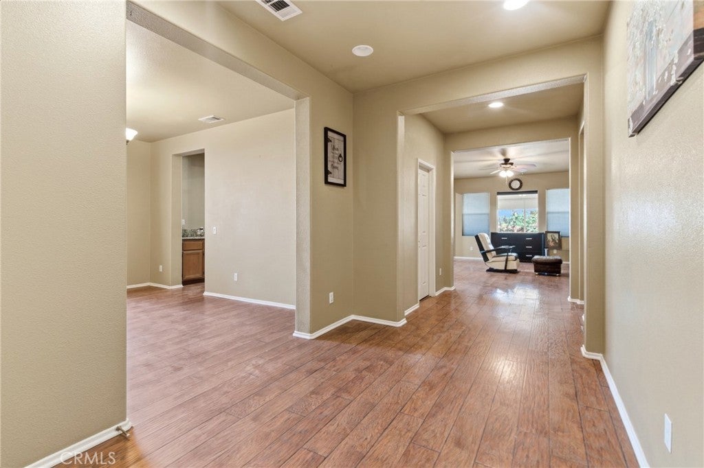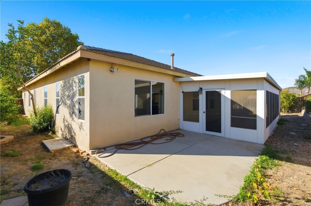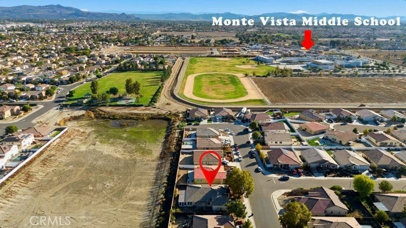 Location, location, location! Discover this spacious five-bedroom single-story home 2.5 bathrooms in a peaceful neighborhood with no rear neighbors. Designed for comfort and practicality, this home boasts an open floor plan and generously sized rooms. The kitchen features granite countertops, a butler area, pantry, large island, and a cozy eat-in nook. A separate formal dining room is perfect for entertaining. Relax year-round in the extra-large fully enclosed patio/sunroom with ceiling fans. Laminate wood flooring adds warmth and charm throughout. The home includes two full bathrooms with dual sinks, and the master bedroom has a walk-in closet. The 3-car garage offers plenty of space for vehicles, storage, or hobbies. Situated in the Mosaic neighborhood of San Jacinto, it’s just steps from Monte Vista Middle School and within walking distance of parks. Conveniently located near Ramona Expressway for easy commuting. The backyard provides stunning views of San Jacinto Peak. Home is sold as-is, and the buyer must assume the existing solar lease (see supplement). Brand New central 5-ton AC and heating.