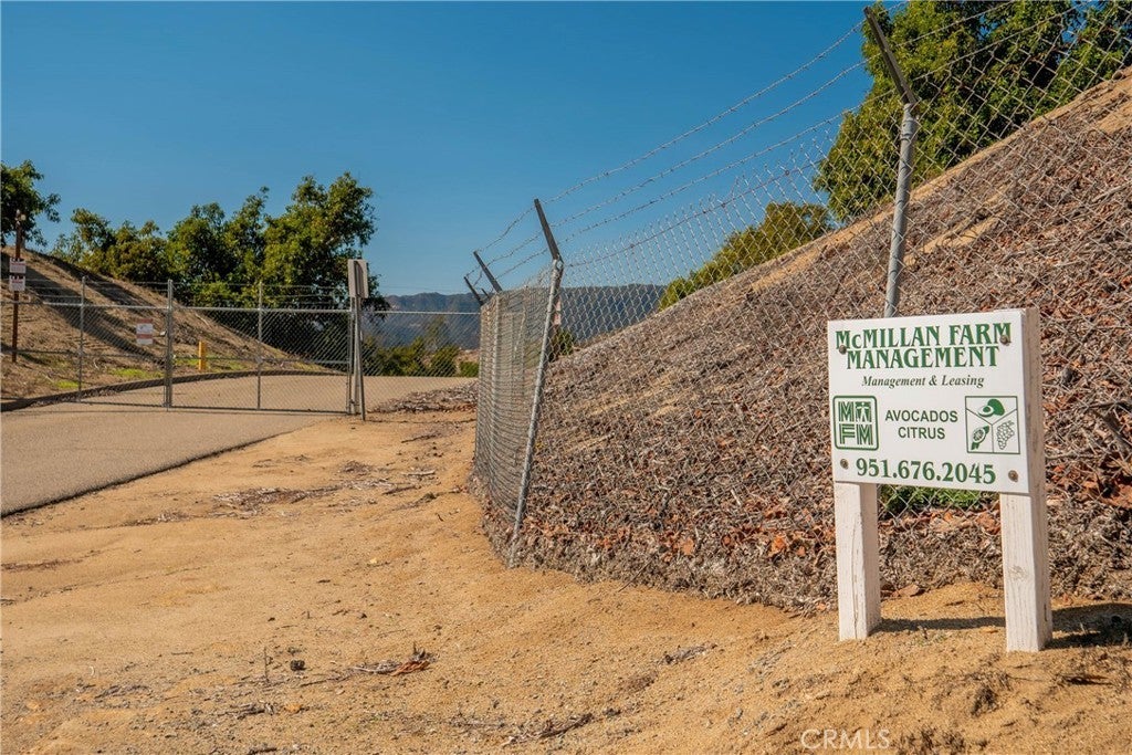 Fabulous 9.96 Acre Haas Avocado Grove with exceptional and panoramic valleys and hillside views! This property has several building sites. It is gated and on a paved road that ends in a cul-de-sac for the ultimate Privacy! Utilities nearby allowing for a custom dream home with room for a workshop or ADU! This healthy avocado grove is in excellent condition and is being professionally managed by Sierra Pacific Farms, Inc. It has “Agrivoltaics” using solar to power the irrigation remotely and provides more efficiency to regulate the water usage. There are approximately 600+ trees with a mixture medium sized trees & over 100 younger trees approximately 6 years old. Large oak trees along the northern property line offers a beautiful canopy. Contiguous 9.41 acre parcel that fronts Camaron Rd is also available with a 2" water meter and they can be sold together MLS#SW25251538. Come live a tranquil Country lifestyle yet be located only minutes from Temecula Old Town, shopping, easy freeway access and nearby Temecula wineries! Seller financing offered with 30% down OAC (on approved credit).